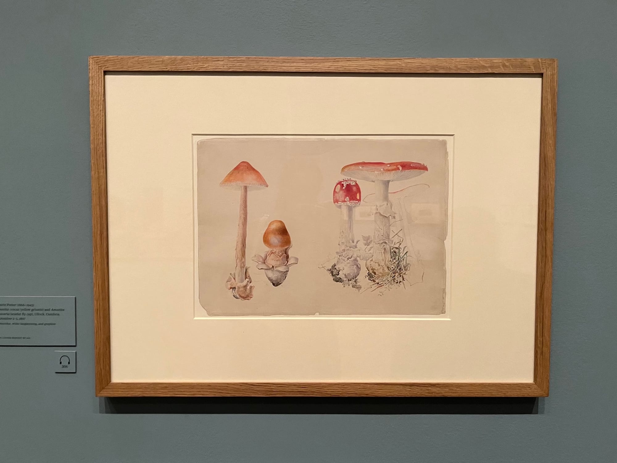Without the pressure to earn a living or marry into wealth, Potter was free to dedicate herself entirely to her passions. She drew relentlessly as a child and adolescent. In her 20s and 30s, Potter emerged as a mycologist and naturalist. Detailed depictions of fungi such as "Anainta crocea, 'Organe Grisette', and Amanita muscaria. 'Fly Agaric'" (1897) exemplify her scientific prowess.