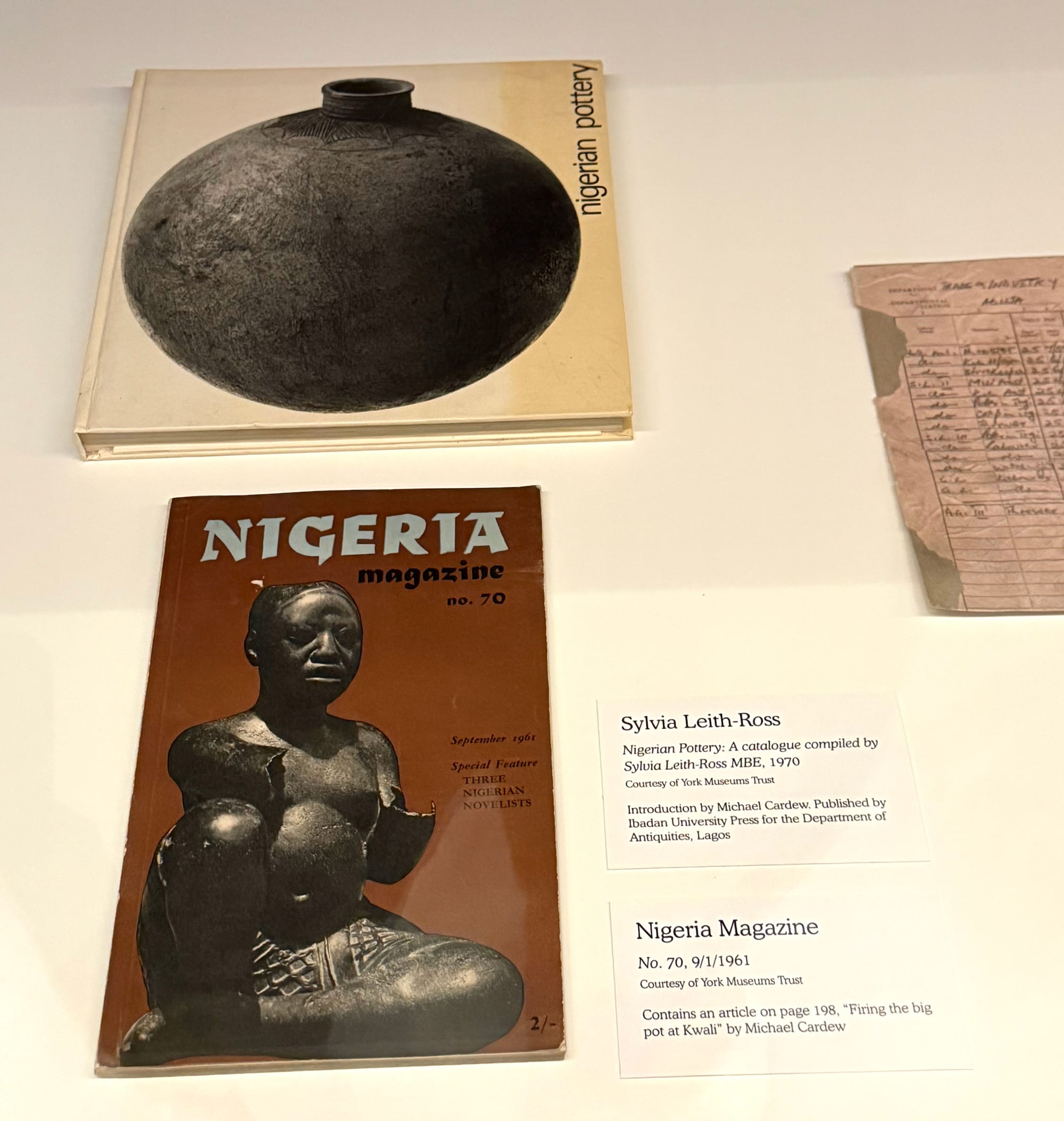 Nontsikelelo Mutiti’s graphic wall at the entry and exit presents a field of repeating geometric patterns that sets the rhythm of the exhibition. The design parallels the textured clay surfaces of the vessels, where ridges, grooves, and contours register the labors of the artists’ hands. These marks are not merely decoration but traces of process and presence — records of Black women’s expertise and experimentation with clay. Beginning with Kwali’s pots, through the works of Audu, Odundo, Leigh, Gbadebo, and other contemporary artists in the second gallery, the exhibition demonstrates how Black women’s ceramics embody continuity, carrying histories across generations.