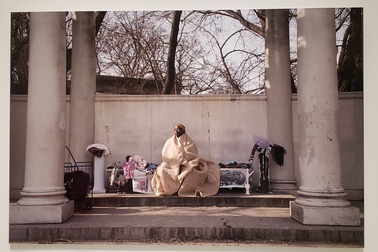 Still, the second part of the gallery lacks the cogency and power of the other room. It feels more makeshift, as if the curators wanted to alert us to other kinds of peril that we are subject to — sexual violence, the vulnerability of crossing borders, homelessness, being subject to the barbarity of police — but were ticking boxes.