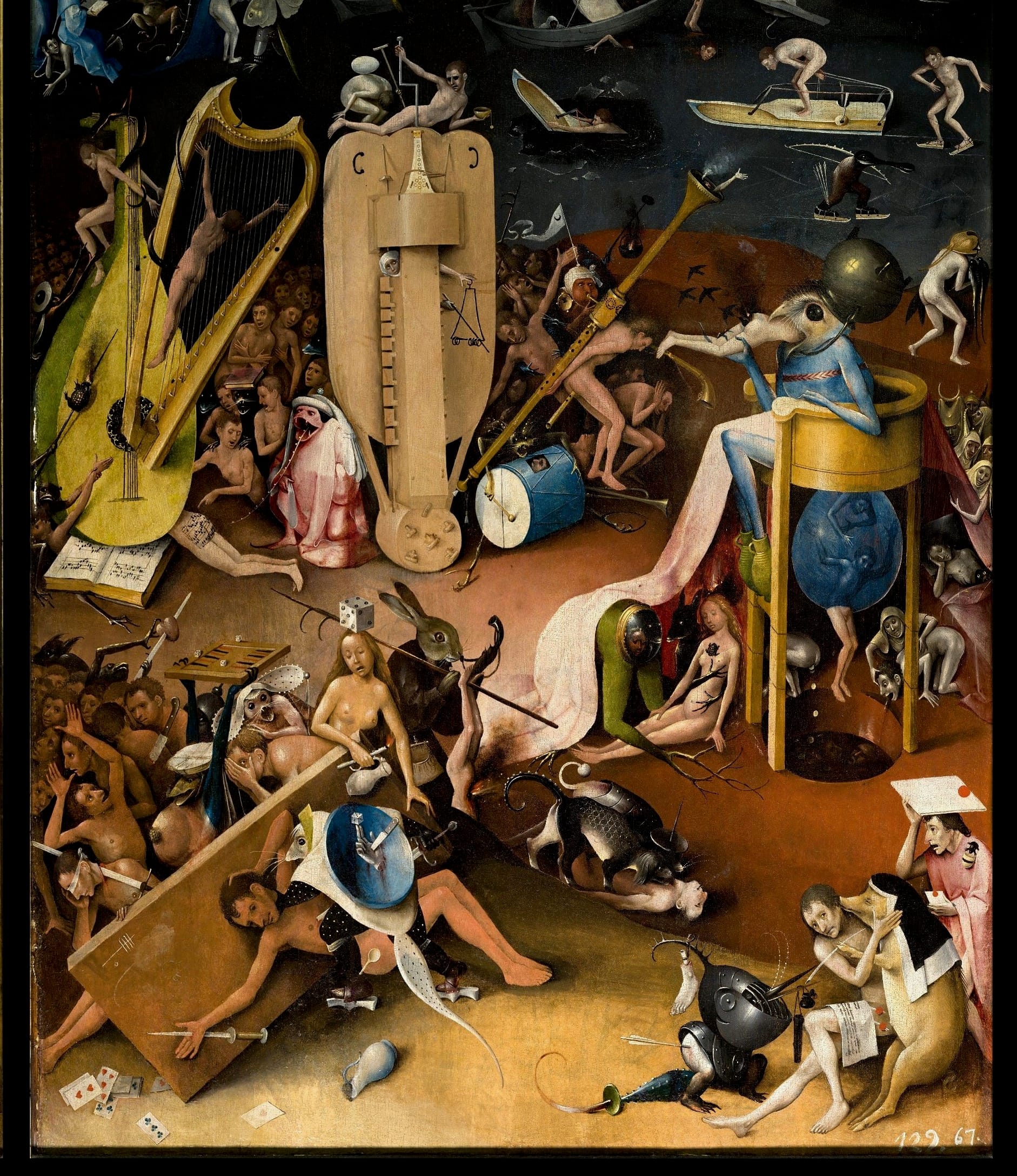 I venture such a claim only to emphasize just how otherworldly and sui generis Bosch happens to be, a necromancer who was able to pull hell upward to earth and to preserve it in oil and wood. As Turner argues, Bosch's "demons and tortures are more varied and imaginative than anything we have seen yet." No other artist in Western painting has ever captured such an enduring demonic imaginary like Bosch has. He single-handedly perfected the visual idiom of perdition, and the result has been five centuries of nightmares, the progeny of the Netherlandish painter visible in contemporary Satanic imagery from horror movies to heavy metal music.
