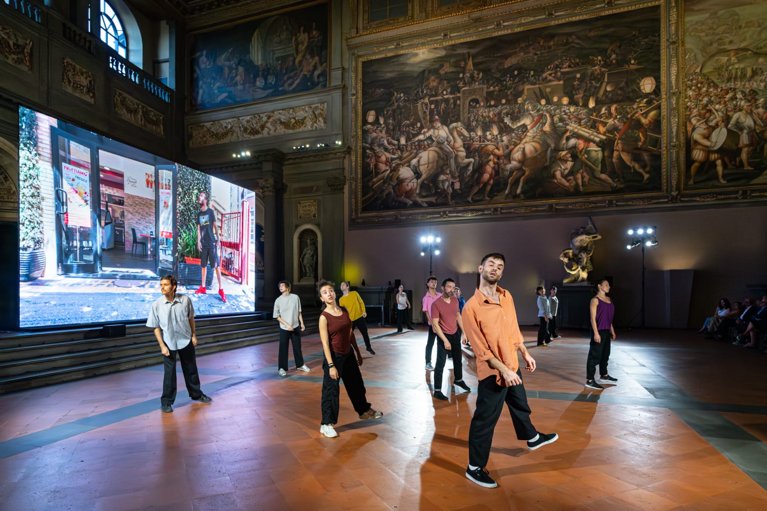 The performance was uncanny, odd, powerful. And now, there’s a second chance to experience it: a video installation titled “OLTRE,” based on footage from the October performance, is currently on view in the Hall of Arms at Palazzo Vecchio in Florence.
