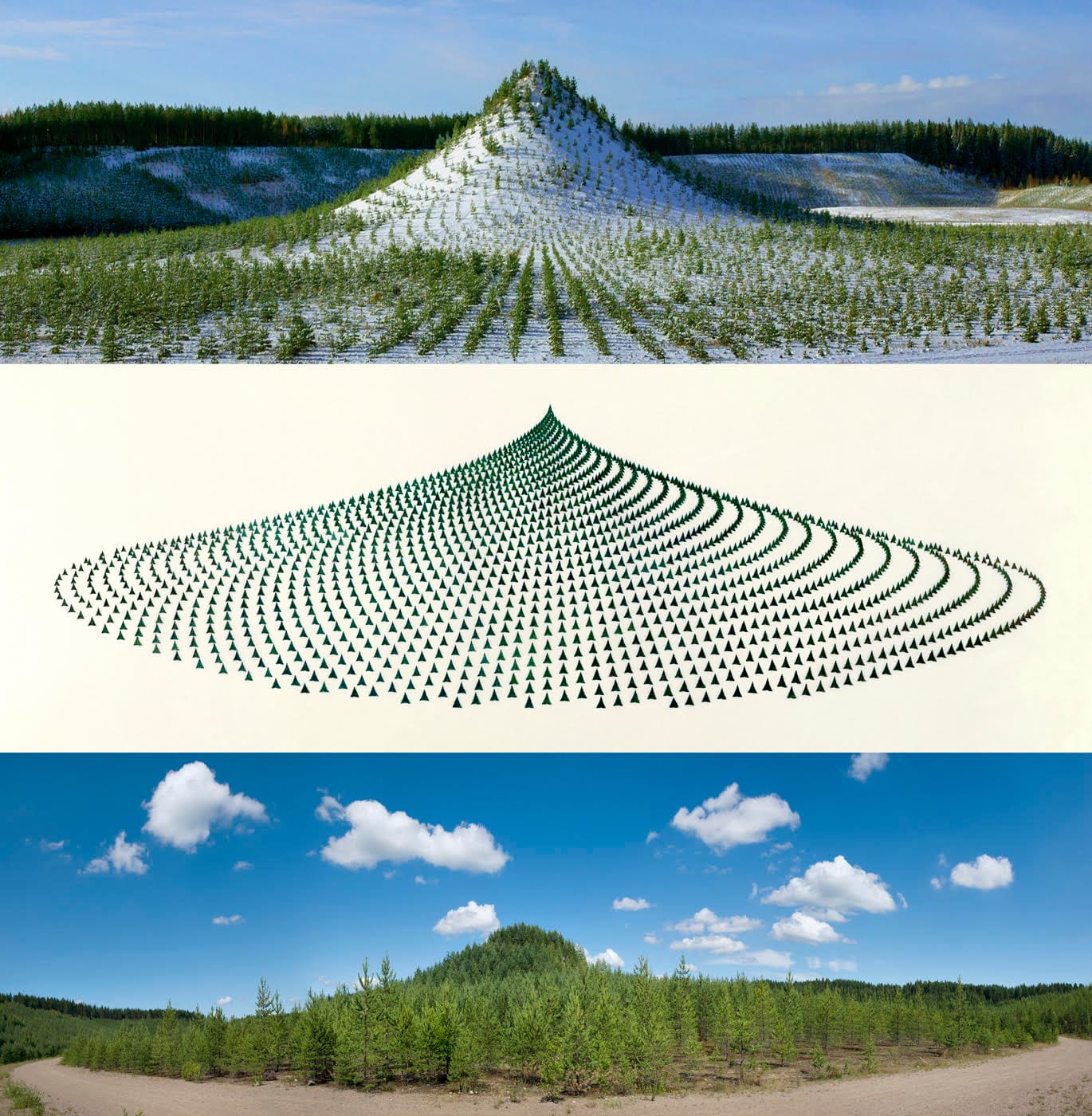 Denes’s work isn’t propaganda; it’s not a national park. “Tree Mountain” could be viewed as purely sculptural, but it also uses the tools and vocabulary of land preservation and reclamation to not only suggest, but also physically carry us forward, toward actually cleaner air. Like the other ecological artists I mentioned, Denes explores — and often make real steps toward — alternatives to our current disastrous ecological course.