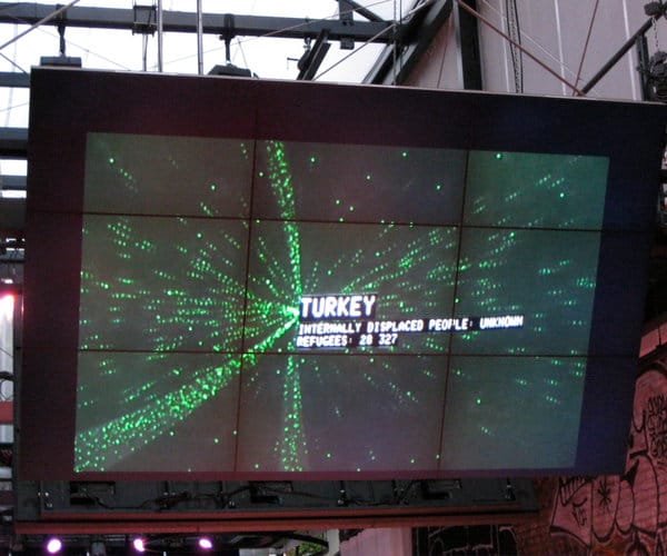 While most of Diller Scofidio + Renfro works catered towards a middle class sense of city life, their project “Exit” shows in Paris in 2009 goes global to explore population shifts around the world due to war, natural disasters and environmental changes. A globe spins around the room on a large screen and prints out maps with statistics of migration as it spins. There was almost something satisfying in watching the Earth leave behind a neat train of information like a giant stamp. Here it would seem that again seeing is understanding, but the statistics arranged in pretty graphics deny the actual story they tell of urban discomfort.