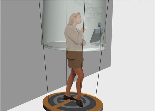 In “No (No Smoking),” a project that was never realized, Diller Scofidio + Renfro create private shaft spaces where smokers can enjoy a guiltless cigarette away from prying eyes. The first drag activates a touch screen that displays a private network of smokers in other locations, offering social media for the nicotine addicted. Other than a surefire way to choke on second hand smoke (although it really doesn’t matter since you’re already smoking), the project is hilariously ironic. While the shaft tries to create a private space in the public realm, it only makes smoking more visible and even sinful, especially when the smoker’s enforced isolation is on view for everyone else to see.