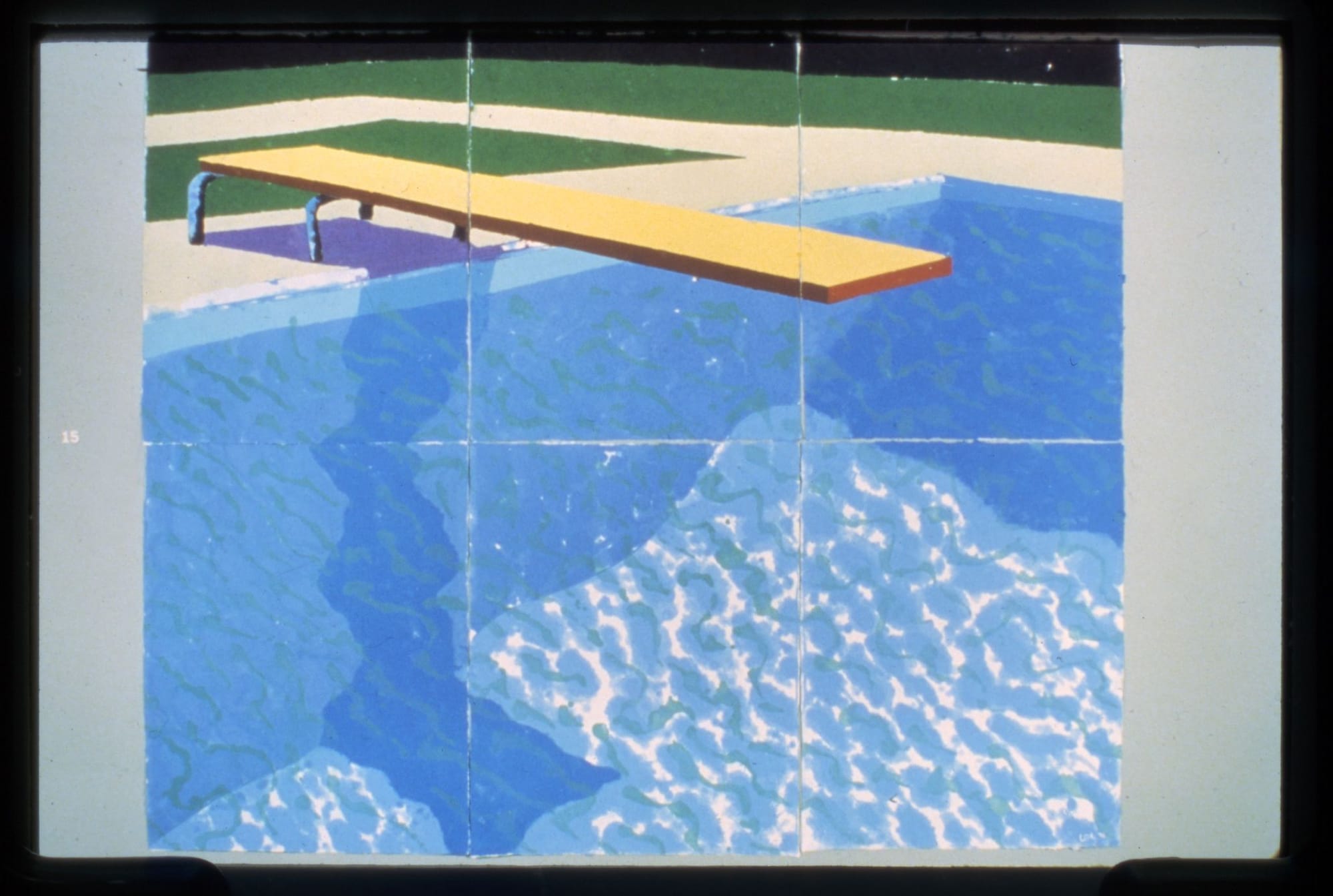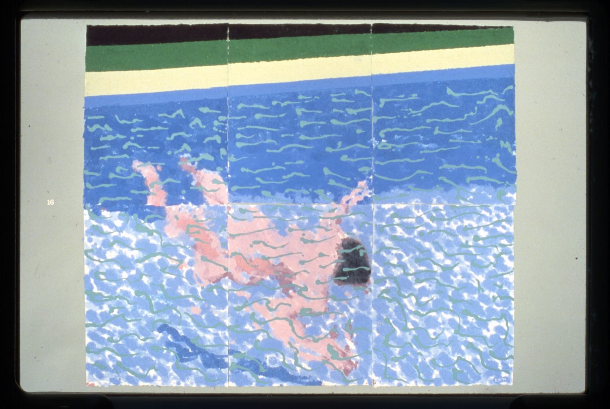 "Hockney is always playing with this idea of presence and absence," Karasoulas explained about "Paper Pool 15," which features a diving board, and "Paper Pool 16," depicting the artist's nude and submerged lover, Gregory Evans. "You see that in some of his earlier paintings of swimming pools — a big splash but no figure. I think that Hockney sort of gestures to those ideas in these two images."