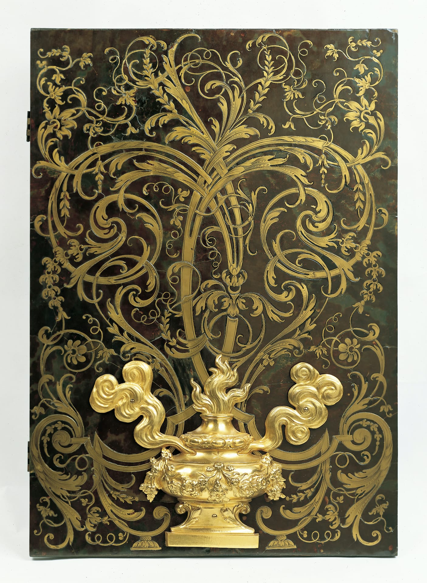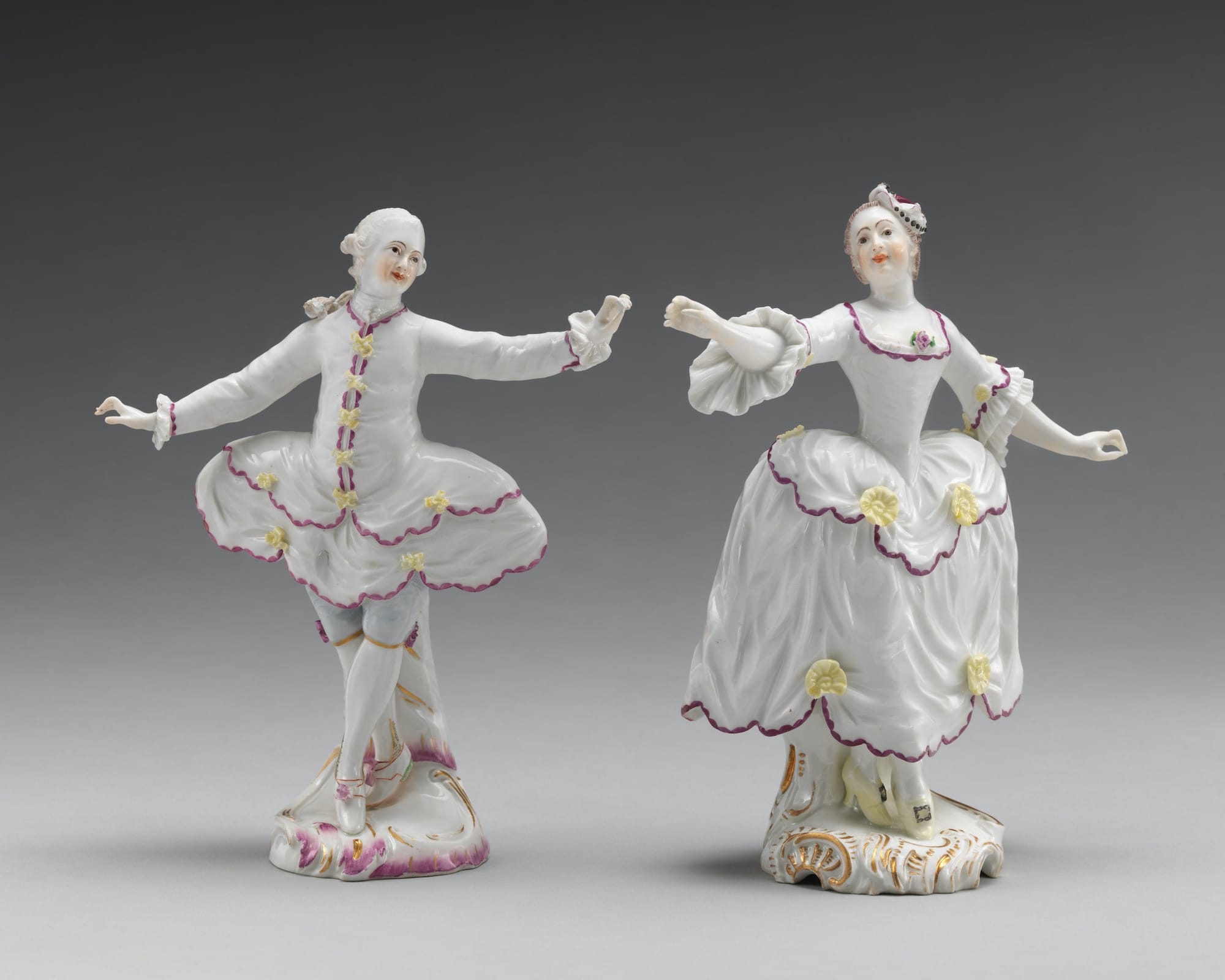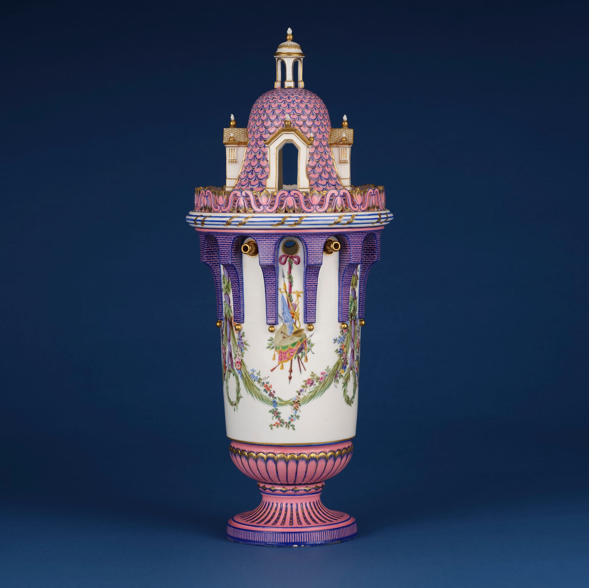 The same applies to two tower vases from c. 1763 loaned by the Met, manufactured by the Sèvres Porcelain Manufactory and designed by Étienne-Maurice Falconet. These white porcelain vases, with zingy green and gold detail, have charming architectural features that resemble mini turrets, with a railing “supported” by little buttresses around their circumference, and architectural niches separated by slanting “roofs" of articulated surface grooves. To contemporary eyes that recognize Disney’s intellectual property as kitschy plastic children’s toys, it is astonishing to see that these novelty vases came first, and by some two centuries.