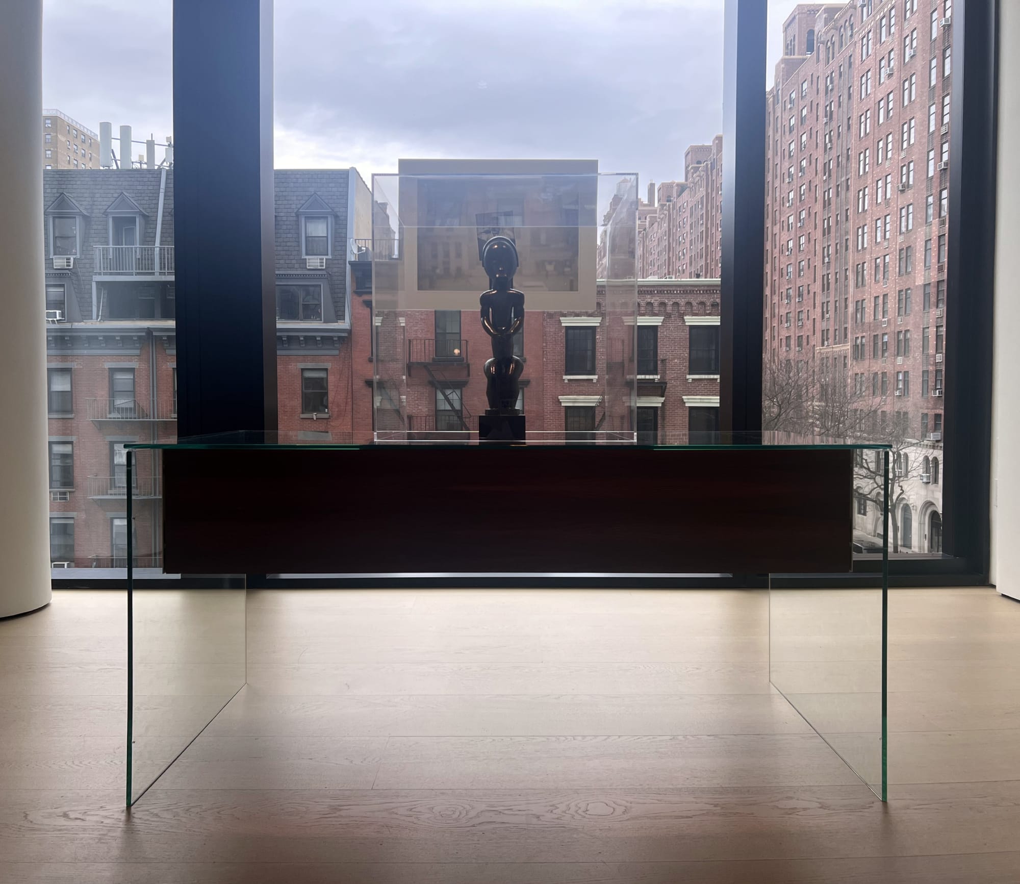 But The Writing’s On the Wall also wields silence in ways that verge on obstinate obscurity. Meaning glimmers winkingly on the horizon of one room, which sets a 19th-century male guardian figure made by an unrecorded Betsi-Nzaman artist upon a Modernist desk, invoking the gaping voids of history — the Euro-American art world makes much of 20th-century Modernism, but not enough of the corpus of West and Central African sculpture that inspired it. Pasted on the window behind the pairing is a photograph of a photograph of a man in an eyepatch and bowtie pasted on a window, its title suggesting that it was possibly taken just a block down from the Hill Art Foundation. But a nearby quote by James Joyce is the only indication other than the checklist that that depicted figure might be the writer. Beyond that, one would need to arrive equipped with knowledge that he was a Modernist to make the connection that all the works here relate to the historiography of the movement. To fully put together the relationship between all that and silence, a more apt quote might have come from Portrait of the Artist as a Young Man (1916): “I will try to express myself ... using for my defense the only arms I allow myself to use — silence, exile, and cunning.”