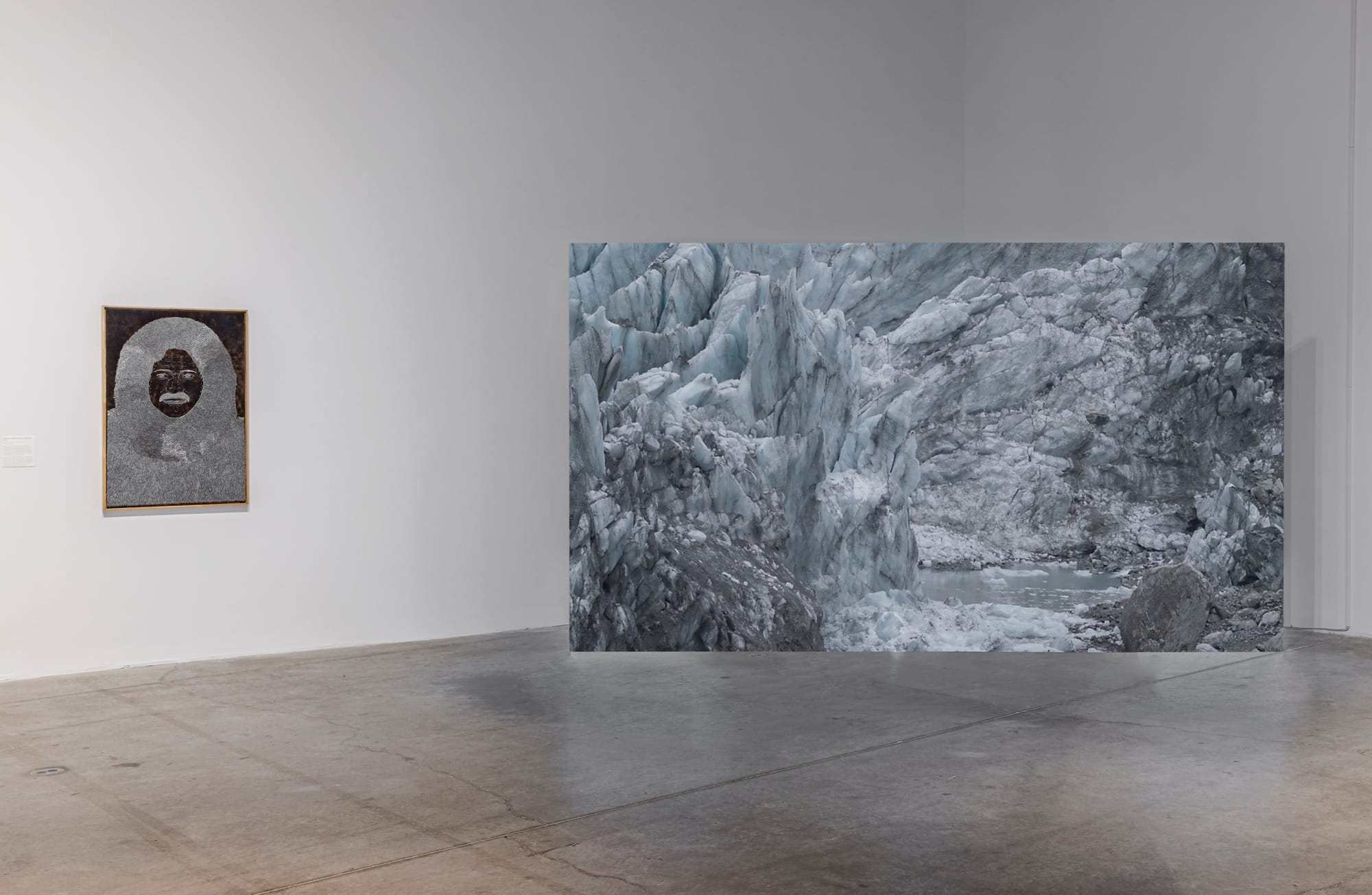 Huber also traveled to Agassiz Glacier on Te Waipounamu (the Māori name for New Zealand’s South Island) to organize a symbolic unnaming ceremony with a karakia, or incantation, offered by a Māori carver called “Karakia — The Resetting Ceremony” (2015). A few years later, Huber’s video “Mother Throat” (2017–19) documented a similar unnaming ceremony at Lac Agassiz in the Algonquin First Nation in collaboration with an Inuit throat-singing duo.