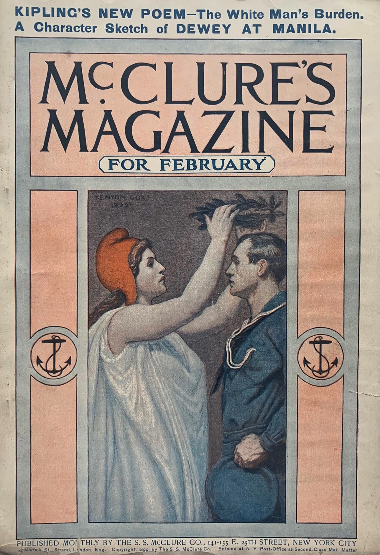 Another development contributed to emerging propaganda. During the 1890s, a new generation of American magazine publishers developed an alternative for the dusty old “family house” magazines which published literary and historical subjects. The new breed embraced current topics and sought popular appeal, crucially by lowering prices. Because cheaper issues would have to be underwritten by advertising revenue, magazines like Munsey’s and Cosmopolitan sold rafts of ads to new consumer product manufacturers. Advertisements quickly evolved into a fresh visual medium. In the process, magazine covers and full-page advertisements provided the space and money for illustrators and designers to create a new commercial science of word, image, and letterform. Working with editors, art directors, and ad clients, they honed their skills to stimulate, even implant, consumer desire for new products.