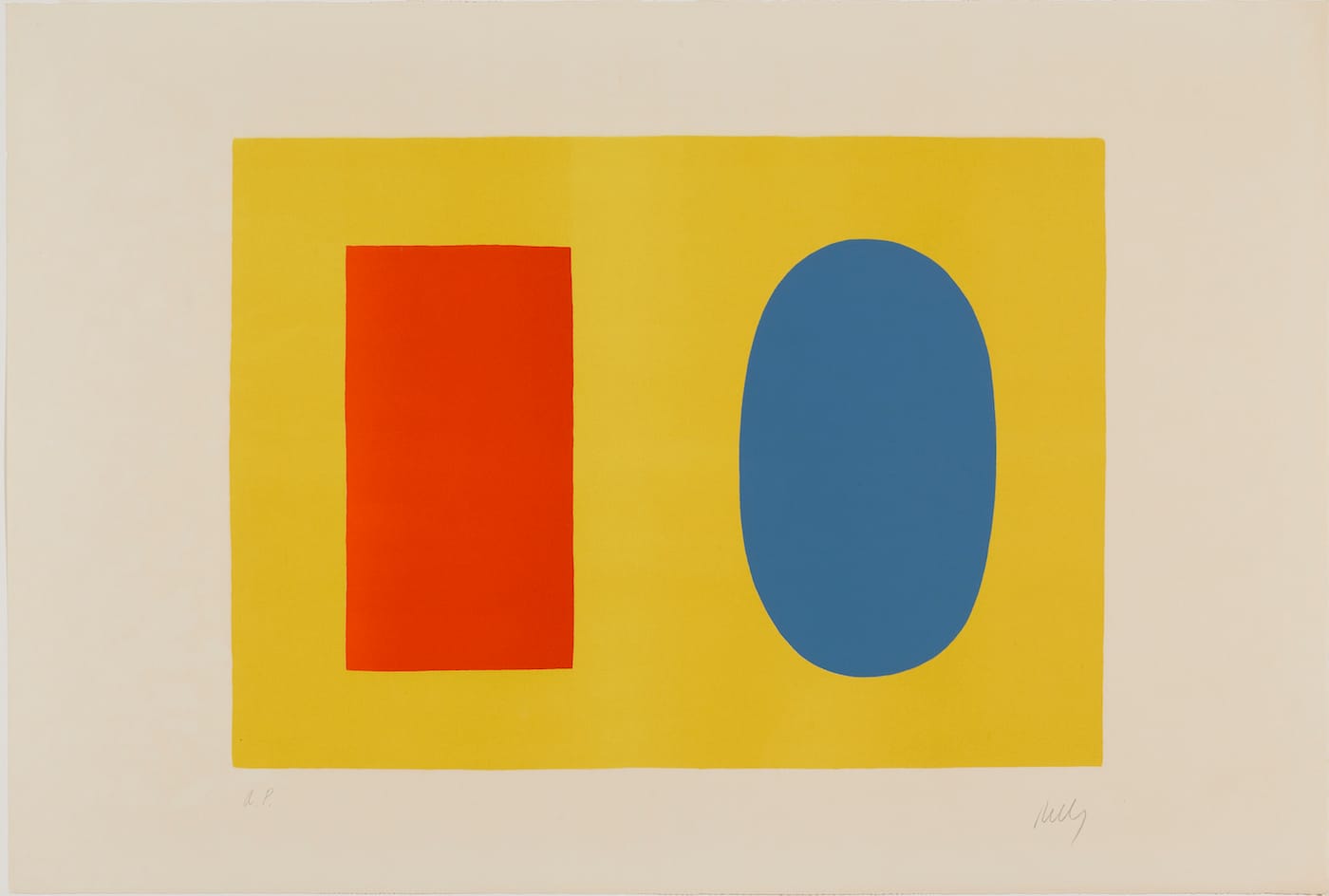 For the two Suites, Kelly worked with prominent printer Marcel Durassier, initiating what would become a lifelong affair with lithography. As the exhibition text points out, the process of ‘lifting’ color blocks and line from his surroundings would foreground many of the defining characteristics of Kelly’s later, monolithic works, where natural form and abstract shape become one within the frame.