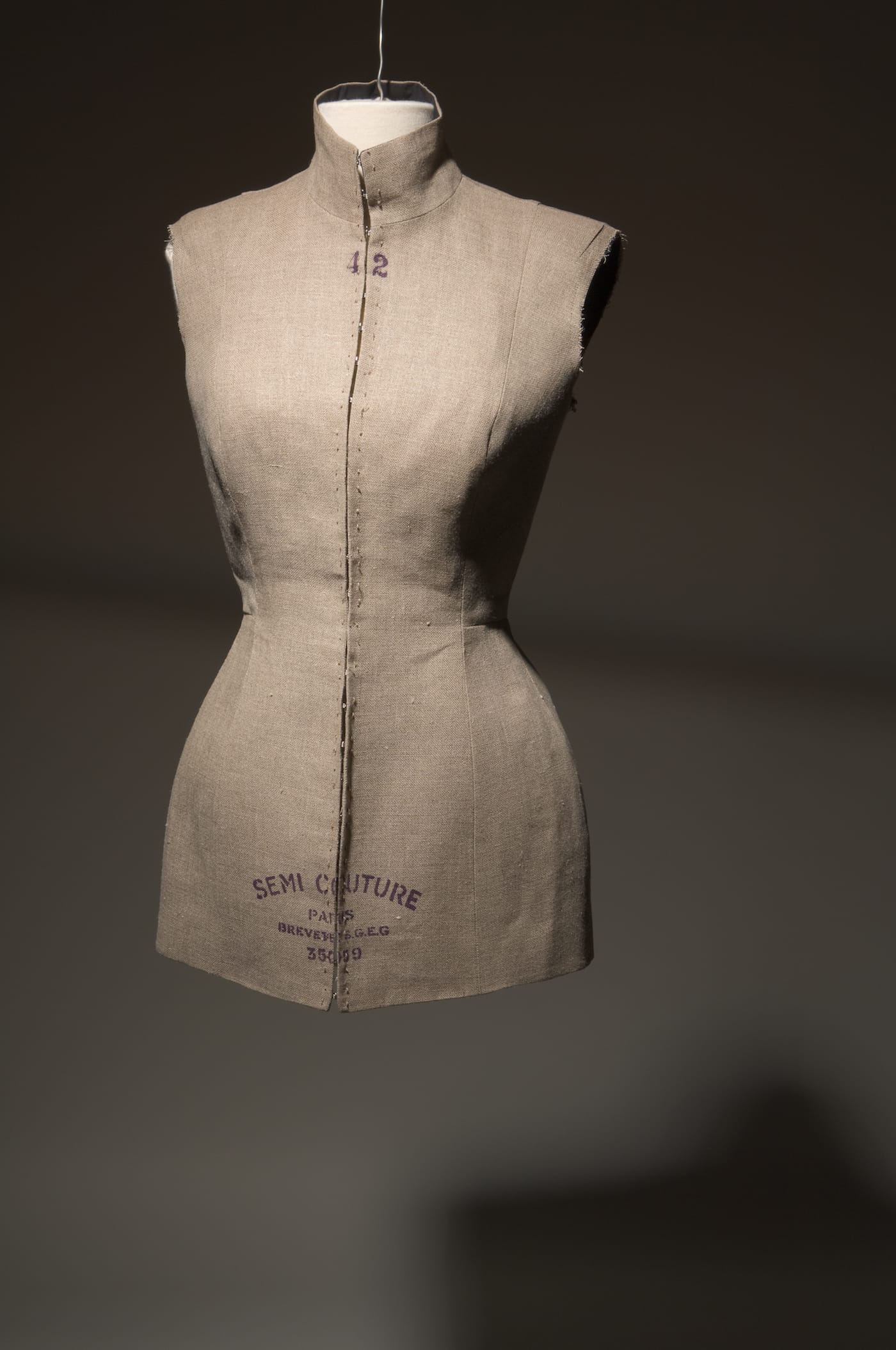 At the entrance of an exhibit at the Museum at the Fashion Institute of Technology (FIT) is a dress entirely made of plastic tape measures. What might, at first glance, look like a creative exercise is actually a work by artist Kate Chow, who intends to highlight society’s obsession with clothing sizes and idealized body shapes. And, in one form or another, this obsession has remained constant throughout the 250 years of fashion history surveyed in the exhibition The Body: Fashion and Physique.