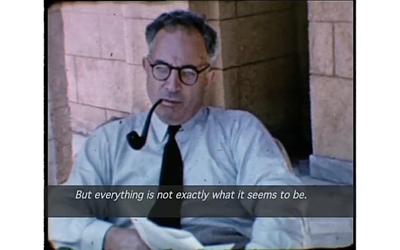 Visitors to the HKW exhibition are not subjected to the brainwashing impact of a real Pollock or Reinhardt. Instead we get painted black-and-white copies, photos of people looking at paintings, and contemporary work mixed in amongst a crowded system of see-through space barriers. The curators have apparently decided to be self-conscious and transparent — to contrast the authority and opacity of the CCF. But this strategy becomes tedious as endless amounts of reading materials are displayed in vitrines in a kind of bibliographical display, a testament to years of international research. It is as though the curators assume that by gazing at hundreds of documents, unable to read them all, you should be imbued with an understanding of how complex these politics are. These display choices, unfortunately, deliver their own argument: that evidence, discourse, and research can yield academic truth. The exhibition asserts that multiplicity in itself makes a subject more genuine, and identifying hegemonies at once dismantles them. This argument of truth in multiplicity repeats in the contemporary works as well: a clever video by Lene Berg “The Man in the Background” (2006) paints a layered portrait of Michael Josselson, the colorful Eastern-European Jew who came to America before the war and became the director of the CCF. Berg’s interview with Josselson’s widow, Diana, is interspersed with archival footage of the couple abroad. Berg loops the footage with seven different narrations, each adding a dimension to Josselson’s character: agent, victim, independent thinker, political organizer, imposter, idealist, scapegoat, and opportunist. All narrations are valid, but the truth — the exhibition seems to tell us – lies in somehow holding all of these perspectives in mind at once.