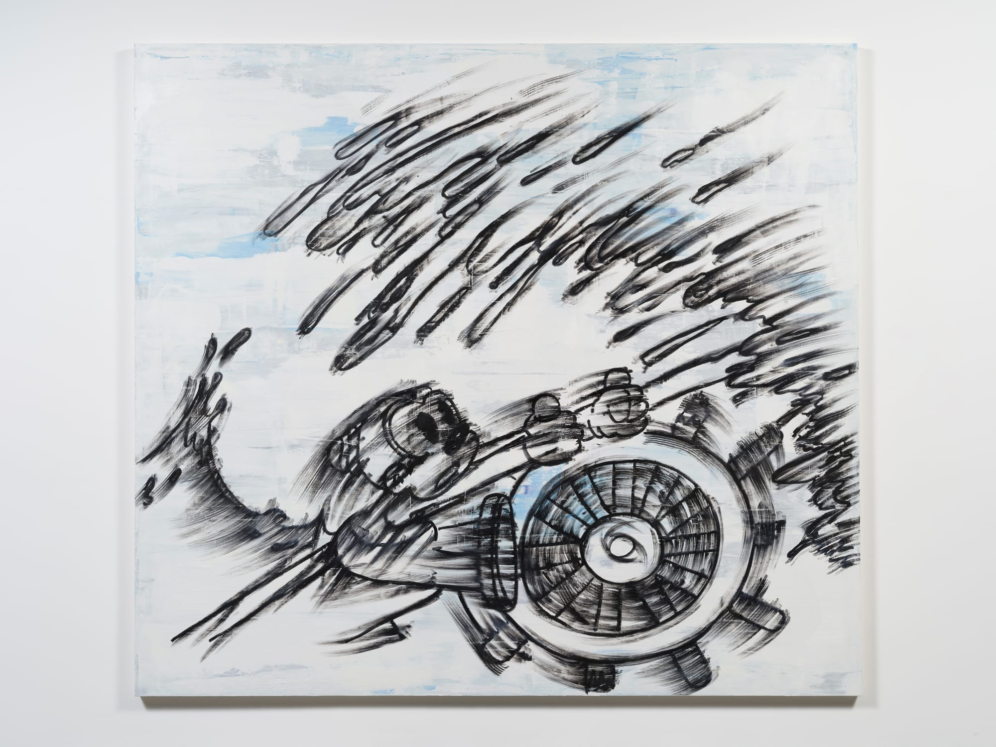 Throughout Simmons's career, in which he has shown at some of the world’s most renowned institutions, the artist still embraces a DIY feel to his work, allowing the creative process to be seen, pushing against the sterility and commercialism of traditional white cube museum and gallery spaces. He insists on taking risks despite the possibility of failure, echoing this affirmation to upcoming generations of artists and cultural workers alike, “Because I think some of the best stuff happens in the mistakes when you leave them exposed like that, you're leaving open your own imperfections and insecurities.” Simmons leans into this discomfort, in his approach to art making and in the subject matter he explores, foregrounding the unknown as part of the process. One of his hopes is that the viewers will walk away with more questions than answers, about the narratives he depicts, what art can and cannot be, and who defines it.