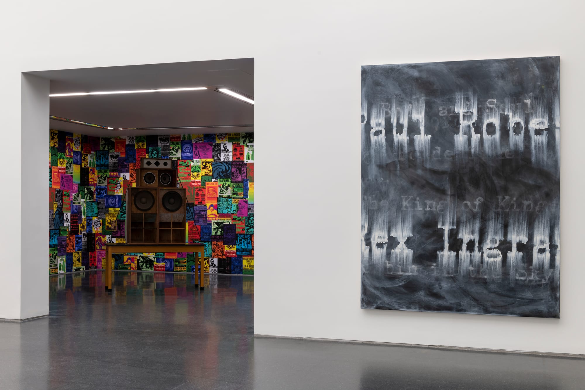 Throughout Simmons's career, in which he has shown at some of the world’s most renowned institutions, the artist still embraces a DIY feel to his work, allowing the creative process to be seen, pushing against the sterility and commercialism of traditional white cube museum and gallery spaces. He insists on taking risks despite the possibility of failure, echoing this affirmation to upcoming generations of artists and cultural workers alike, “Because I think some of the best stuff happens in the mistakes when you leave them exposed like that, you're leaving open your own imperfections and insecurities.” Simmons leans into this discomfort, in his approach to art making and in the subject matter he explores, foregrounding the unknown as part of the process. One of his hopes is that the viewers will walk away with more questions than answers, about the narratives he depicts, what art can and cannot be, and who defines it.
