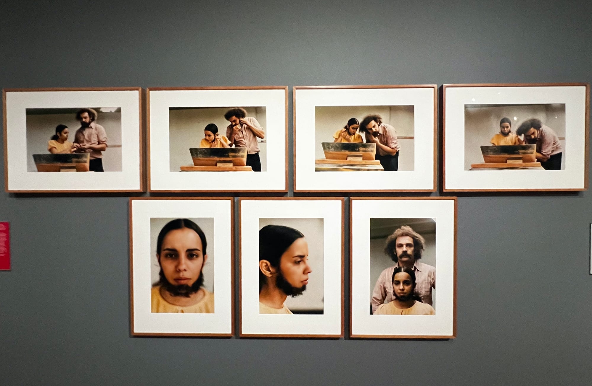 While a grid of J.D. ‘Okhai Ojeikere's photographs of Nigerian hairstyles from the 1970s channels the utter beauty of African women’s hairstyles, Beninese artist Romuald Hazoumè’s “Agbota” (2011) is more explicitly political: A plastic jerrican fashioned into an African mask with a twisted hairdo made from steel wire and plastic suggests the treacherous and extractive crude oil market as well as West African masquerade. The exhibition treads further into topical issues and contemporary art with Ana Mendieta’s Untitled (Facial Hair Transplant) (1972), in which she wears a beard made from her friend’s shaved facial hair — a gender-bending performance that raises questions about the relationship between hair and gender presentation. Likewise, Christopher Makos’s photographs of Andy Warhol in a silver wig and glamorous makeup allude to gender nonconformity and the transformation of one’s hair as a gendered performance.