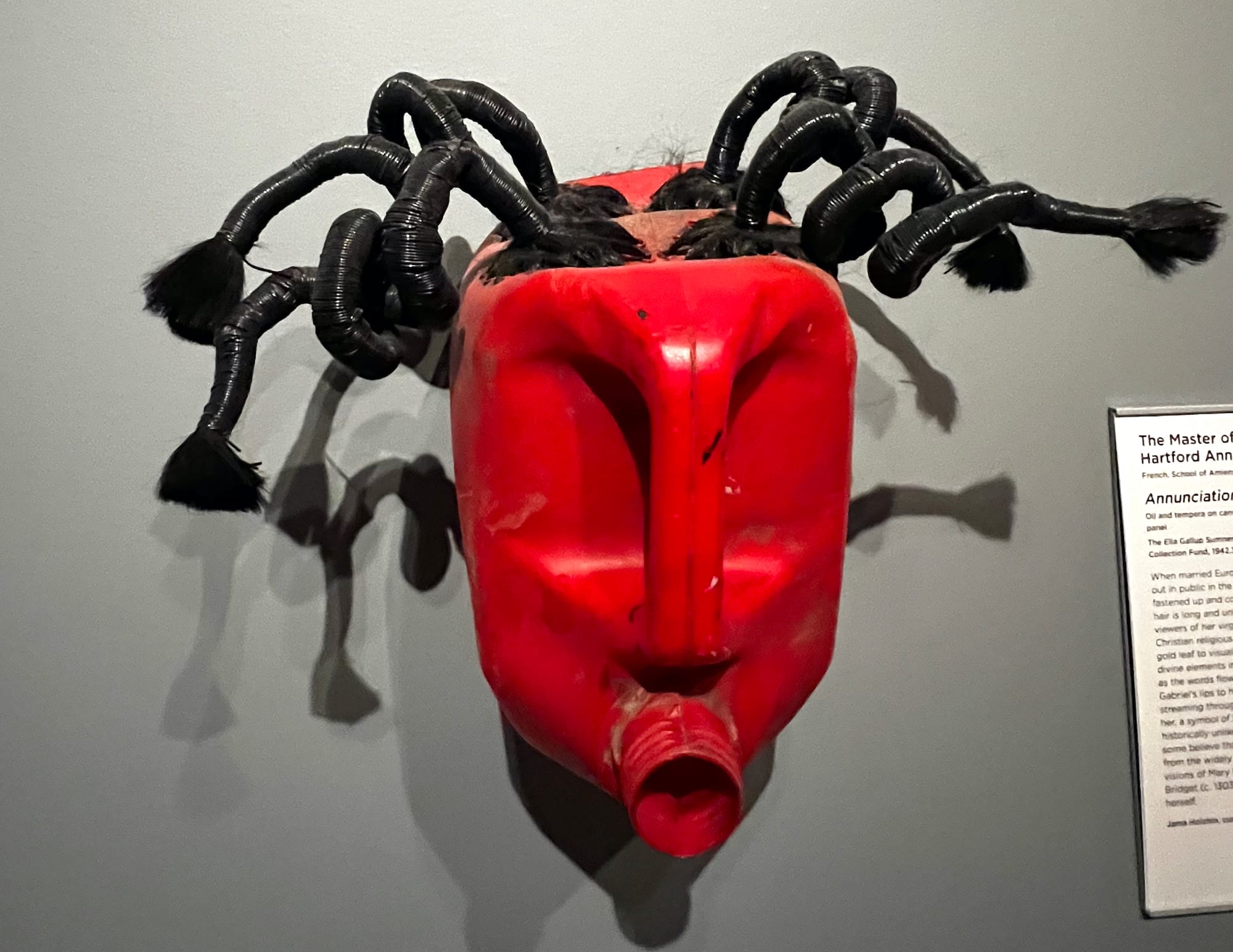 From a 19th-century depiction of Medusa on a shield painted by Swiss artist Arnold Böcklin to “Kinks,” a 2022 painting celebrating Black women’s hair by Ande’Ja Johnson, the show’s curatorial range is impressive. The inclusion of a Sikh turban and kanga (small wooden comb), as well as a wig and headscarf worn by Orthodox Jewish women, present further opportunities to grapple with the meaning of hair across different communal traditions. A massive exhibition with a seemingly infinite web of hair stories and possibilities, Styling Identities pushes the boundaries of museum display to incorporate local communities, as well as chances to touch, interact, and learn, and an eclectic range of historic and contemporary artwork, in the format of a sprawling exhibition that maintains a coherent theme: hair.
