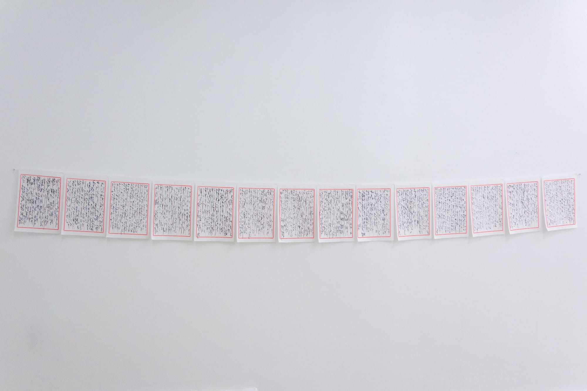 One of the non-origami artworks on view spells it out: 14 pieces of vertical lined paper, bought in Taiwan, on which Lin practiced writing their chosen name over and over again, until a new signature emerged. If you listen deeply, honestly, and playfully to what a body needs, the necessary lines and folds will eventually present themselves. In any case, paper can always be redrawn and refolded.