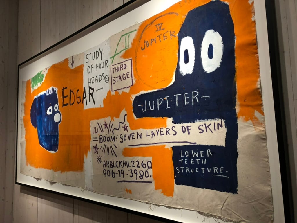 The exhibition also draws the curtain of discretion across the sordid details of Basquiat’s last years, a forgivable sin of omission in an exhibition curated by siblings and a stepmother whose declared intention is the "celebration of the life, legacy, and voice" of a brother and son. Basquiat died from a heroin overdose in 1988, at the heart-rendingly young age of 27. The wall texts mention his death without stating its cause, and then only in passing; the catalogue acknowledges that he died from an overdose, but the word "heroin" appears nowhere in its 336 pages.