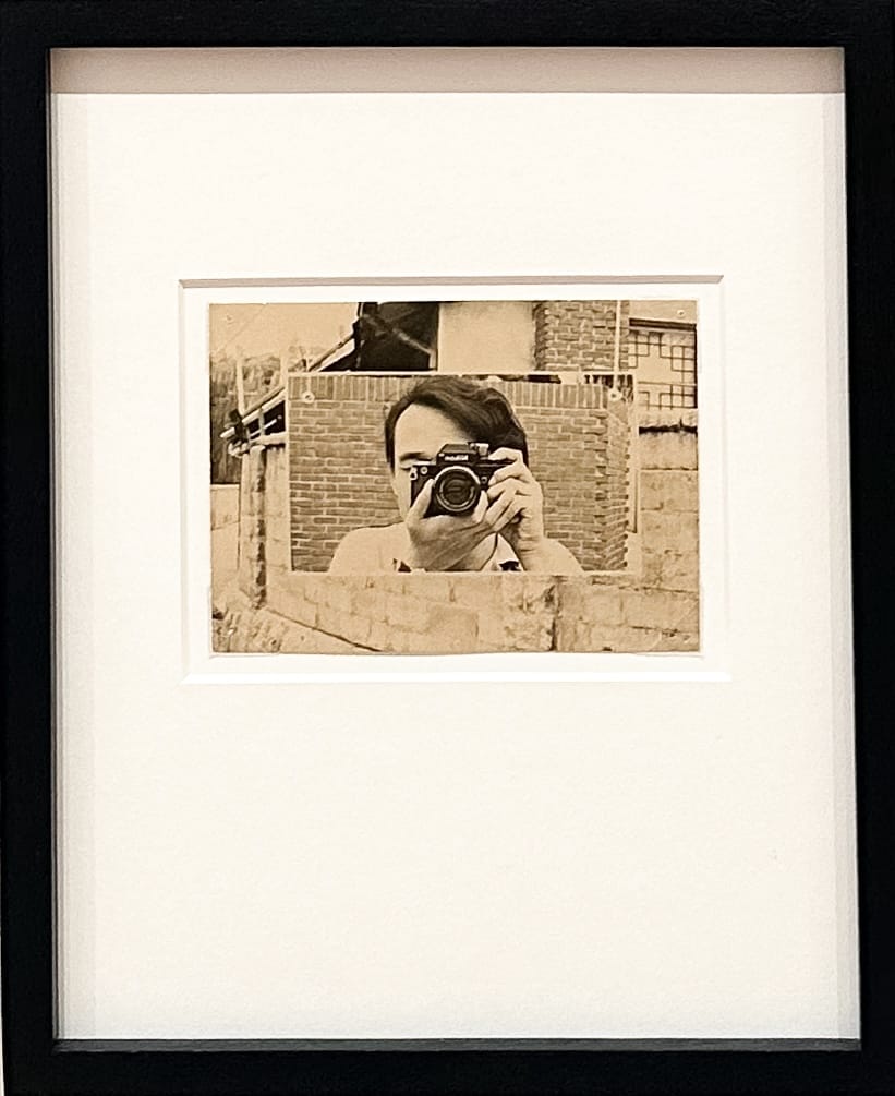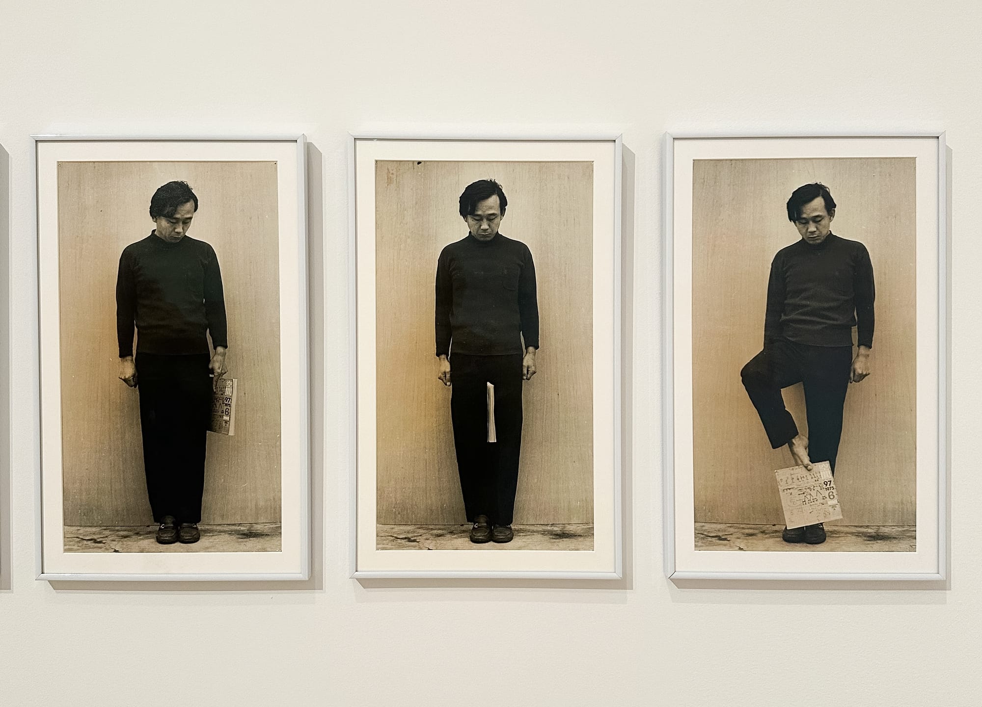 Nearby is a series of self-portraits from 1975 that Sung took in a mirror visible in the center of each frame. As he pivots slightly for each photograph, the changing background creates a panoramic view of the neighborhood with the artist in the center. This world of one-story houses with hanji-paper windows seen surrounding Sung was then quickly disappearing, the political climate rapidly deteriorating, and Korean national identity rapidly shifting. The only constant in these images is the central image of the artist, his camera, and the mirror, as if to say that the only way he could respond to the dizzying changes surrounding him was to emphatically and repeatedly assert his presence. The work is titled simply: “Here.”