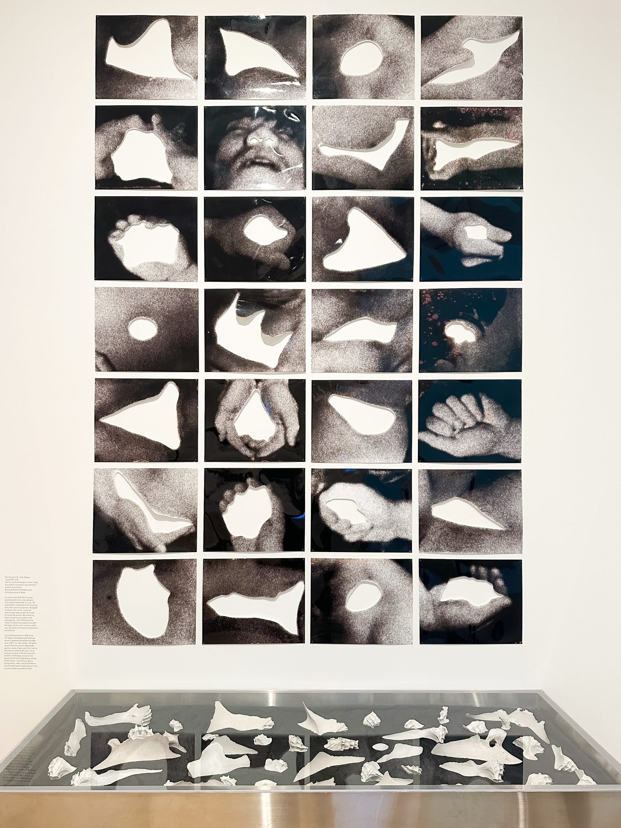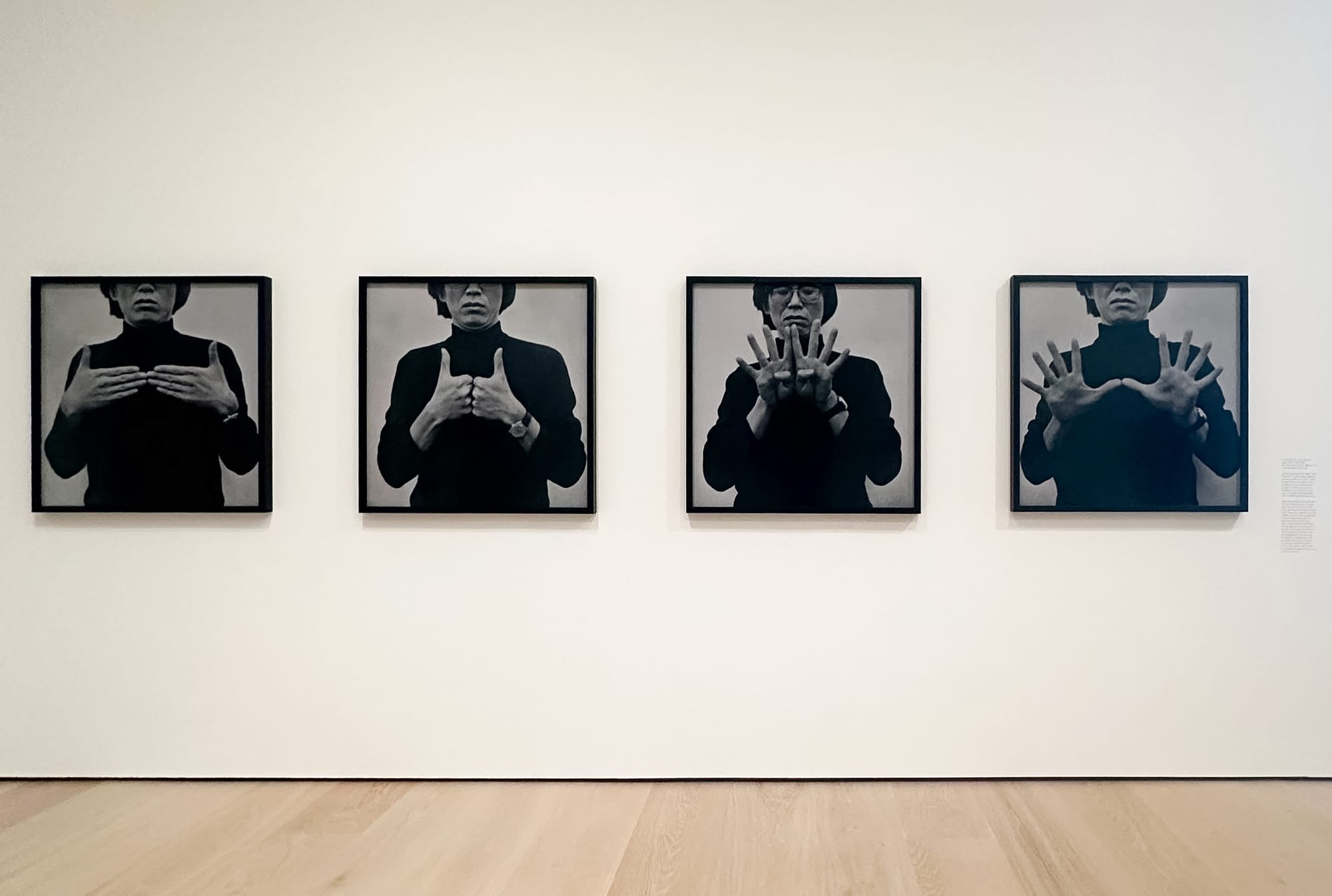 Most of the artists in this exhibition, however, incorporate their own bodies into their work via performance and performative strategies, influenced by movements like Fluxus. Exploring the limits and reach of their bodies became a way to explore their own identities and roles amid the stifling silencing of free speech that accelerated under Park’s rule. In the photographic series Logic of Hand (1975/2018), Lee Kun-yong forms his hands into various shapes, transforming mundane actions into art. In restricting his art into that small range of movement, the piece also becomes a commentary on the way that authoritarian regimes apply control and limits onto people’s thoughts and movements.
