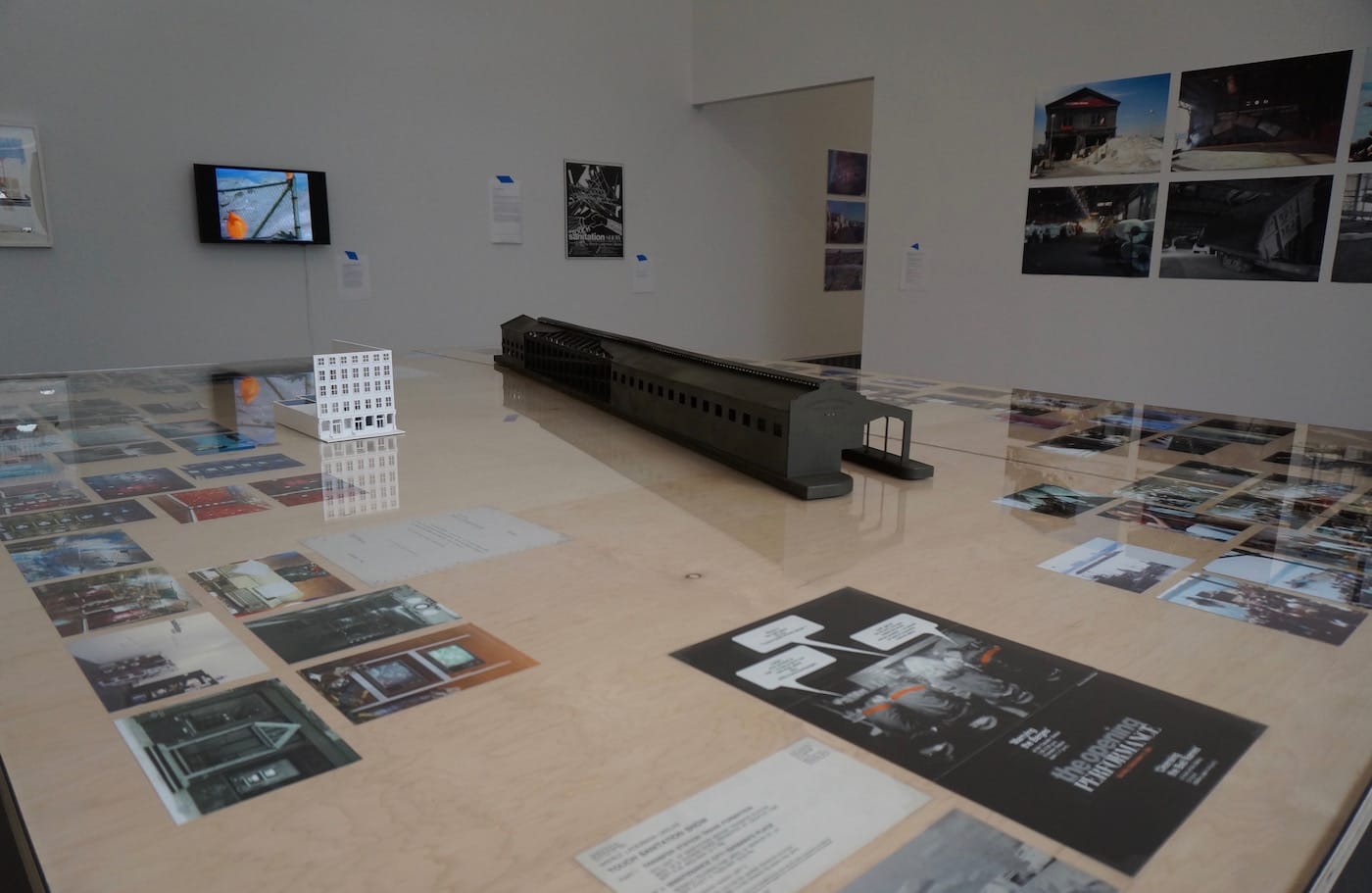 A handshake and a thank you may sound slight, perhaps even silly, but the documentation of “Touch Sanitation Performance” — which fills a gallery at the Queens Museum, plus additional material on the Panorama of the City of New York across the hall — makes clear the scale of the project. Photographs tiled around the walls, maps, videos, typewritten plans, and a binder of press clippings — not to mention Ukeles’s goodbye telex to the sanmen, written over the course of an entire eight-hour shift (and never sent because it would have taken eight hours) — evidence the depth of the artist’s commitment: she didn’t want to just thank the sanmen; she wanted to understand their world. The videos are especially compelling, as Ukeles, often clad in pink and with swooping blond hair, listens to the complaints and frustrations of the uniformed men. Ukeles offers her own emotional labor as a way of validating their manual work.