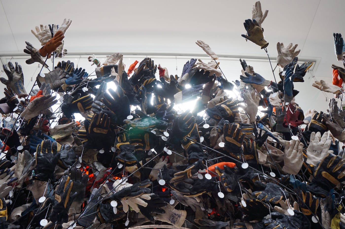 In the following years at DSNY and beyond, Ukeles continued to make grand projects that favored symbolism and gesture. They include a series of slowly mesmerizing work ballets that feature operators moving pieces of heavy machinery in choreographed motion; a trio of pieces for the grand finale of the 1983 NYC Art Parade, including Ukeles sweeping the parade route alongside the DSNY commissioner and other high-level officials; and Touch Sanitation Show (1984), a multifaceted exhibition held simultaneously at the West 59th Street Marine Transfer Station and Ronald Feldman Fine Arts. The last stands out for seeking to give the public a deeper understanding of the realities of DSNY and its workers. It featured an immense installation of equipment (which Phillips deems an “anthropological extravaganza”) and a performance that invited visitors to erase the “bad names” that sanmen had been called.