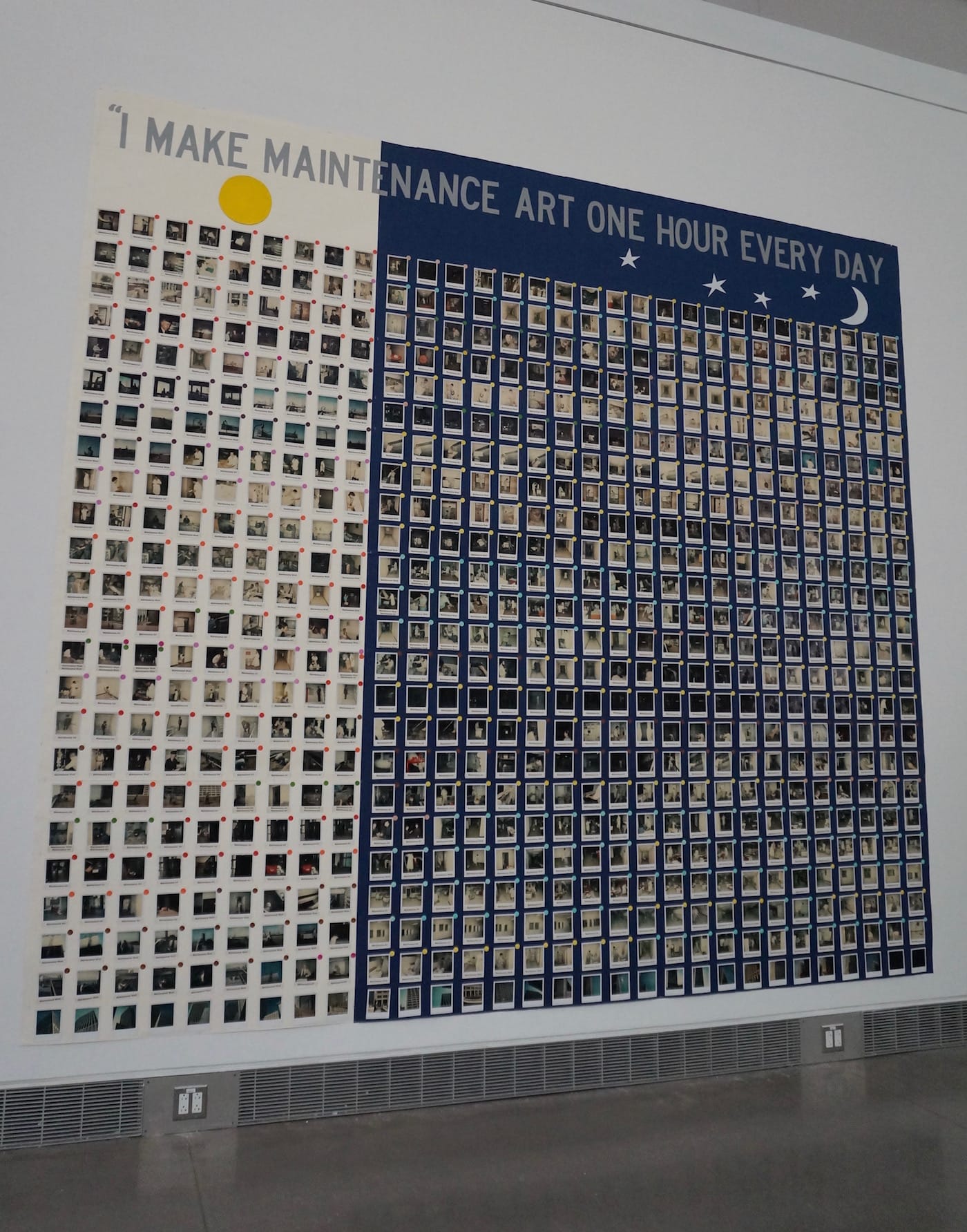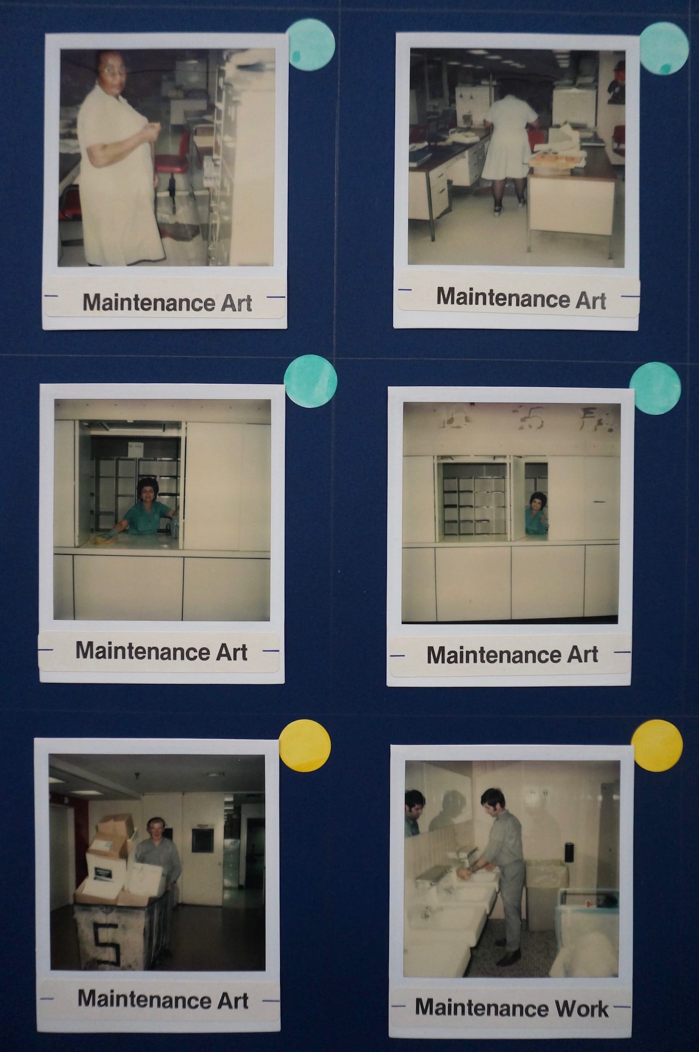 In 1976, Ukeles scaled up once again. Invited by the students in the Whitney Museum’s Independent Study Program to participate in an exhibition called Art < > World, Ukeles decided to make her contribution a collaboration with 300 maintenance workers in the building where the show would be held. For “I Make Maintenance Art One Hour Every Day,” she spent five weeks in the building, approaching workers, photographing them with a Polaroid camera, and asking them to classify what they were doing at that moment as work or art. As with “Transfer,” she used herself as a conduit, giving the maintenance workers access to an artistic authority that she had outlined in her manifesto: the act of naming. “Everything I say is Art is Art,” she had written in 1969. Now she was passing along that power.