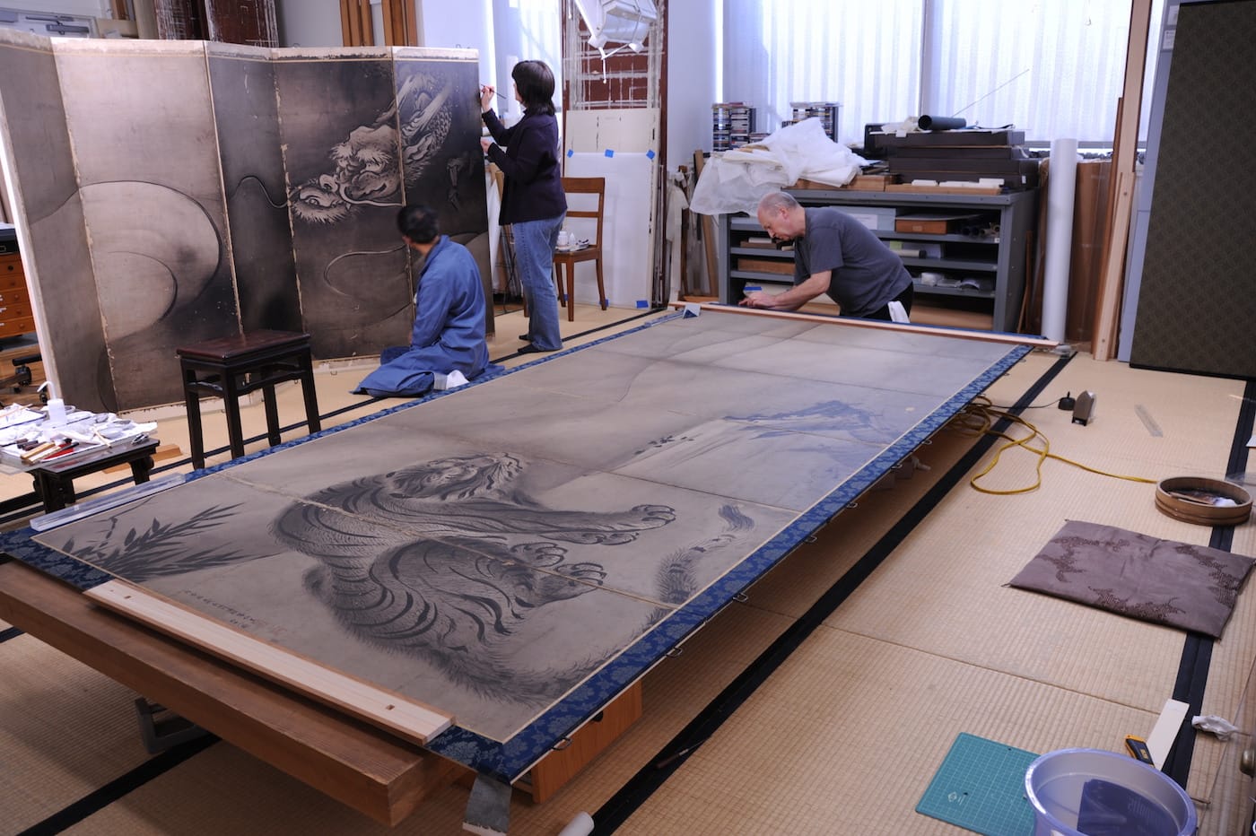 Training for East Asian painting conservation is daunting for American students. There are currently four conservation graduate programs in the US that require three to four years of training. A student with appropriate language fluency may enter a 10-year apprenticeship program at a studio in Japan, China, or Korea. In addition to teaching traditional conservation methods, American training centers must acquire supplies from silk weavers and traditional paper makers, most of whom are based in Asia.