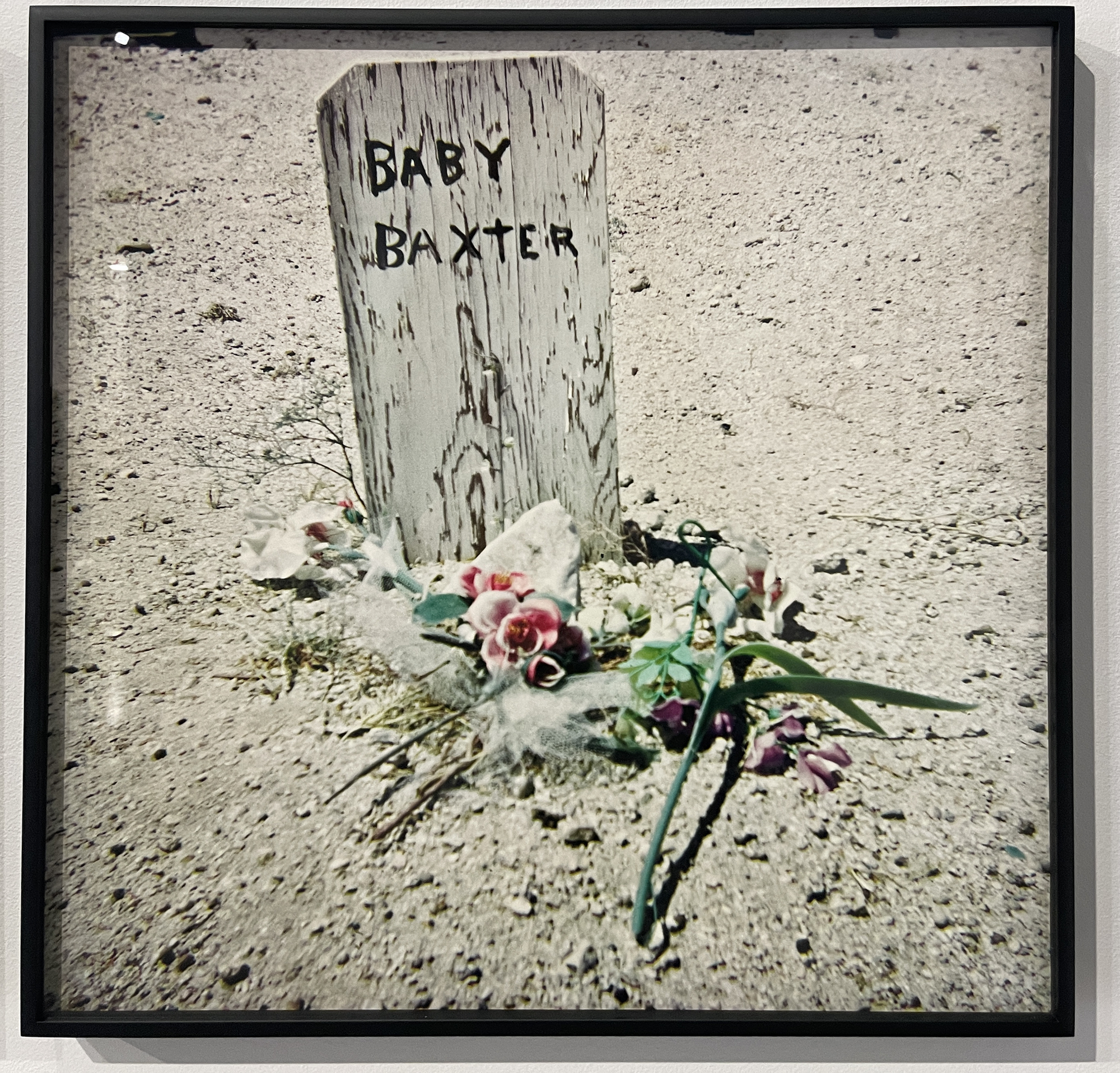 Another photographic series, Western Graveyards (1968), studies the homogenous aesthetic of rural grave sites across Lone Pine, California, and Virginia City, Nevada. They spread across browned dusty fields, crooked crucifixes marking their territory, a pile of stone weighing down the soul buried underneath. The resting places Holt discovered in these gold rush towns appear almost like caricatures of the Wild West. One hand-carved wooden tombstone pays tribute to a Baby Baxter, with no recorded date of birth or death, as if a Halloween prop. But the sandy, ad hoc cemeteries were indeed living memorials, with fresh flowers laid at their markers.