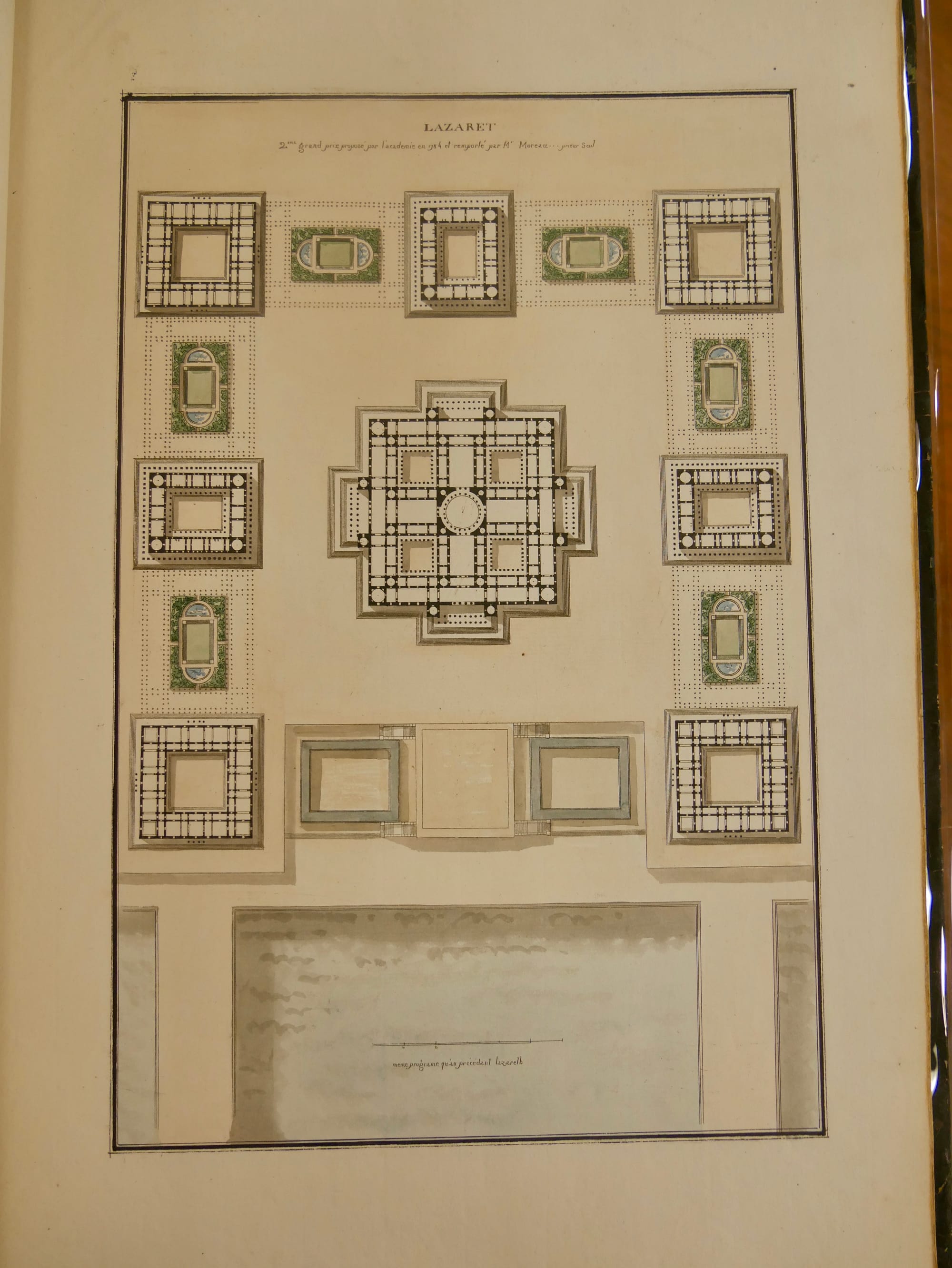 While the Italians’ stance against polychromy spread to other parts of Europe — most notably Spain — architects in areas like France, Germany, and the Netherlands embraced color as a tool to imitate building materials and natural elements in their drawings. This imitative quality — green washes to indicate meadows, for instance — would soon be joined by conventional color codes developed in other fields like cartography and military engineering, where different hues visually classified, hierarchized, and organized information. The most enduring example of color’s symbolic meaning in architectural drawings was pink, which represented masonry for decades.