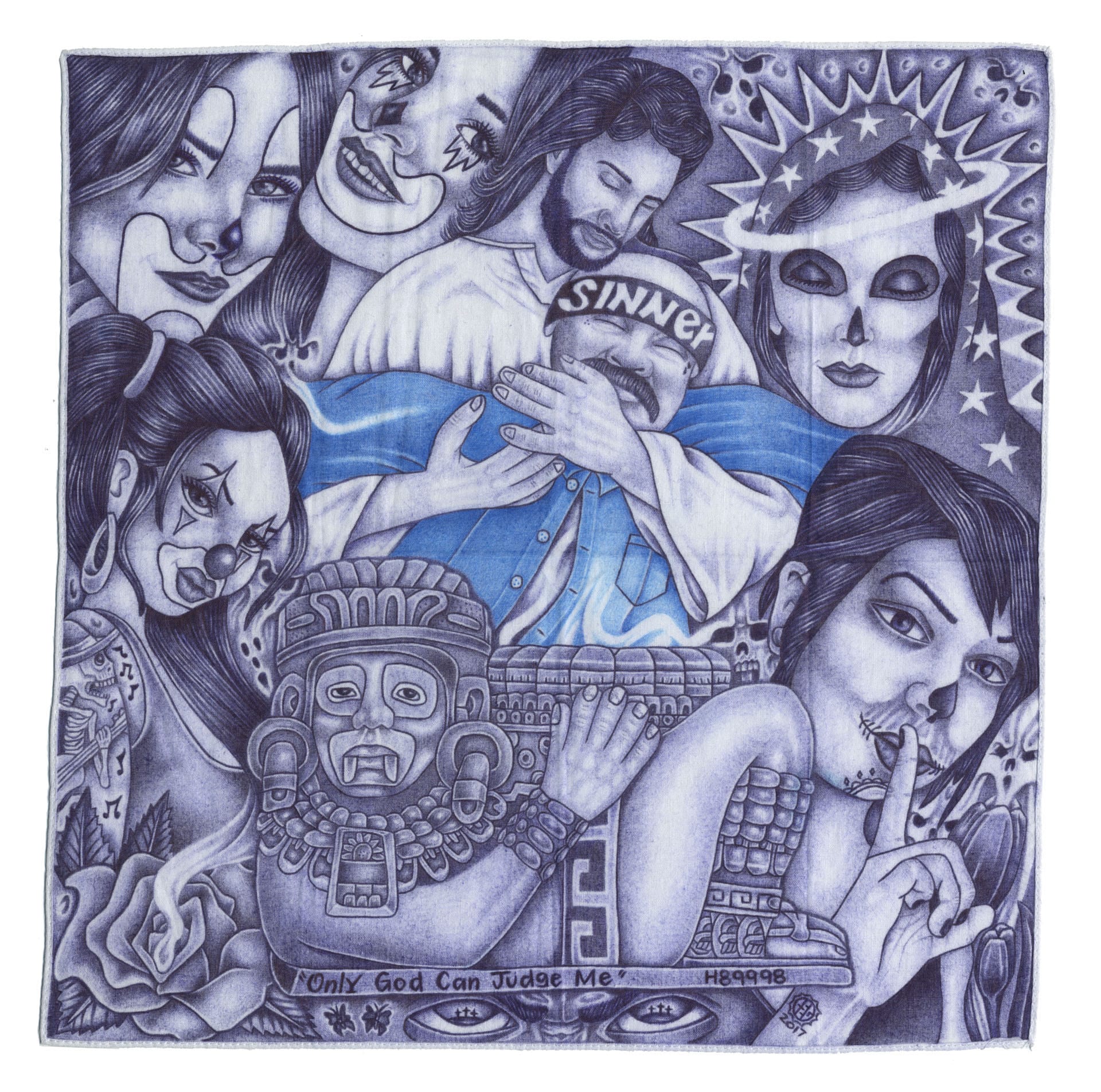 As convicted felons, paño artists lose their right to ownership and even autonomy in the penitentiary. Technically, their artwork never truly belongs to them as the commissary handkerchief is prison property. Placed in the hands of a USPS mail courier, it becomes federal property. If seized as contraband, the paño is deemed state property. While inmate rights vary from state to state, and regulations are variably enforced by federal, state, and private penitentiaries, the paño only achieves independent ownership when and if it reaches the hands of the intended recipient.