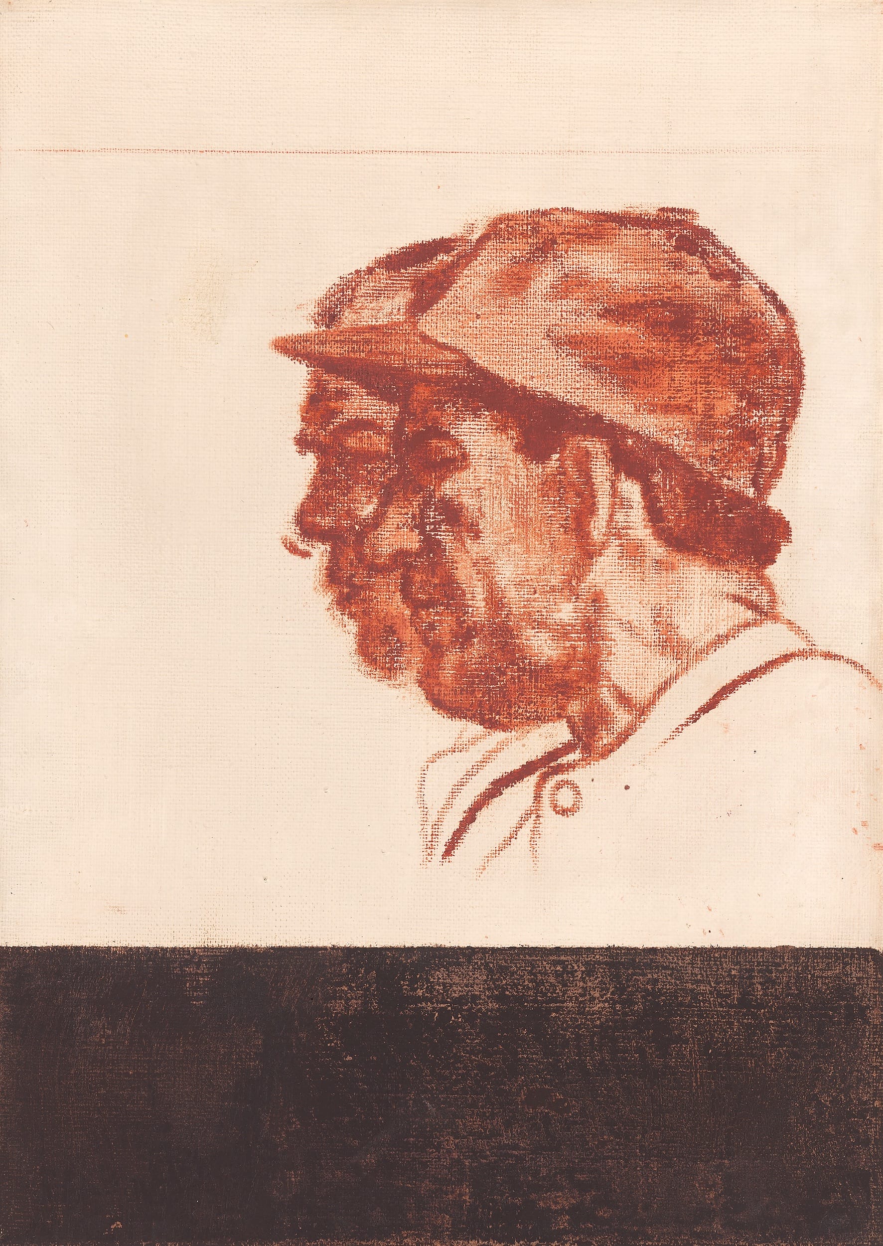 Kitaj liked to make works that look as if they are being seen through the keyhole of other works — the angle of a body, for example; the curiously rhapsodic leaning head of "Red Eyes" (1980) is a straight steal from a fresco by Giotto in the Bardi Chapel in Florence. One of the finest pieces the artist ever made greets you as you enter the gallery containing the later work. It’s called “The Architects” (1981), and the sheer thickness and density of the color ravish the gaze. The whole is a kind of extravagant layering of several images into one. Everything threatens to fall apart, but finally, here, it all holds.