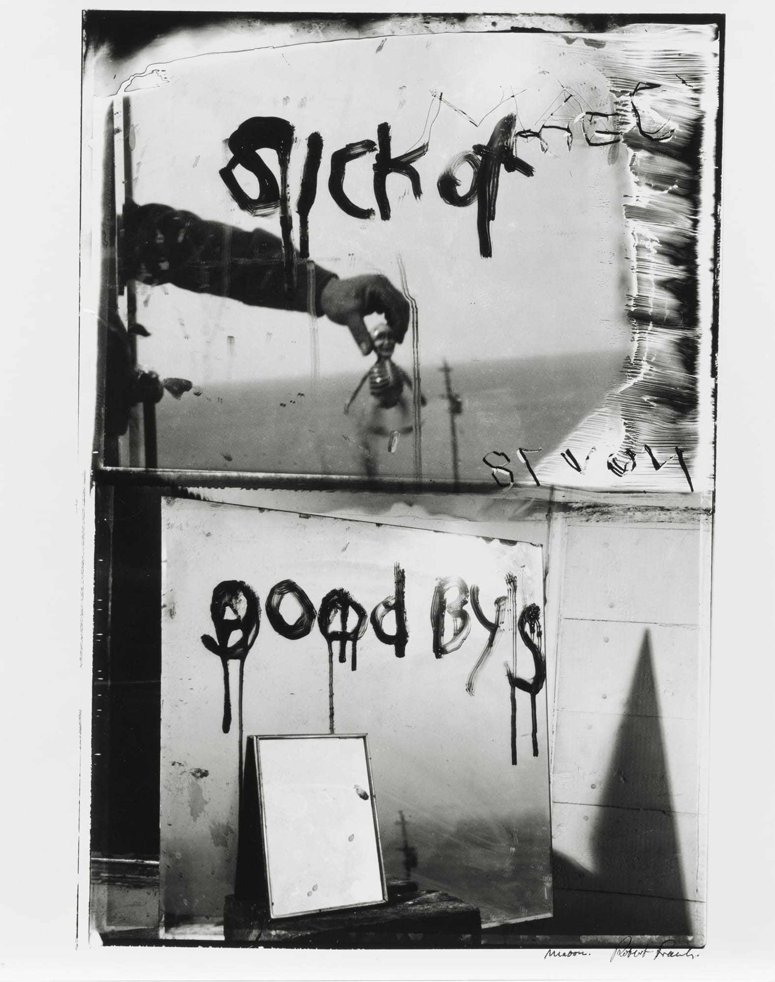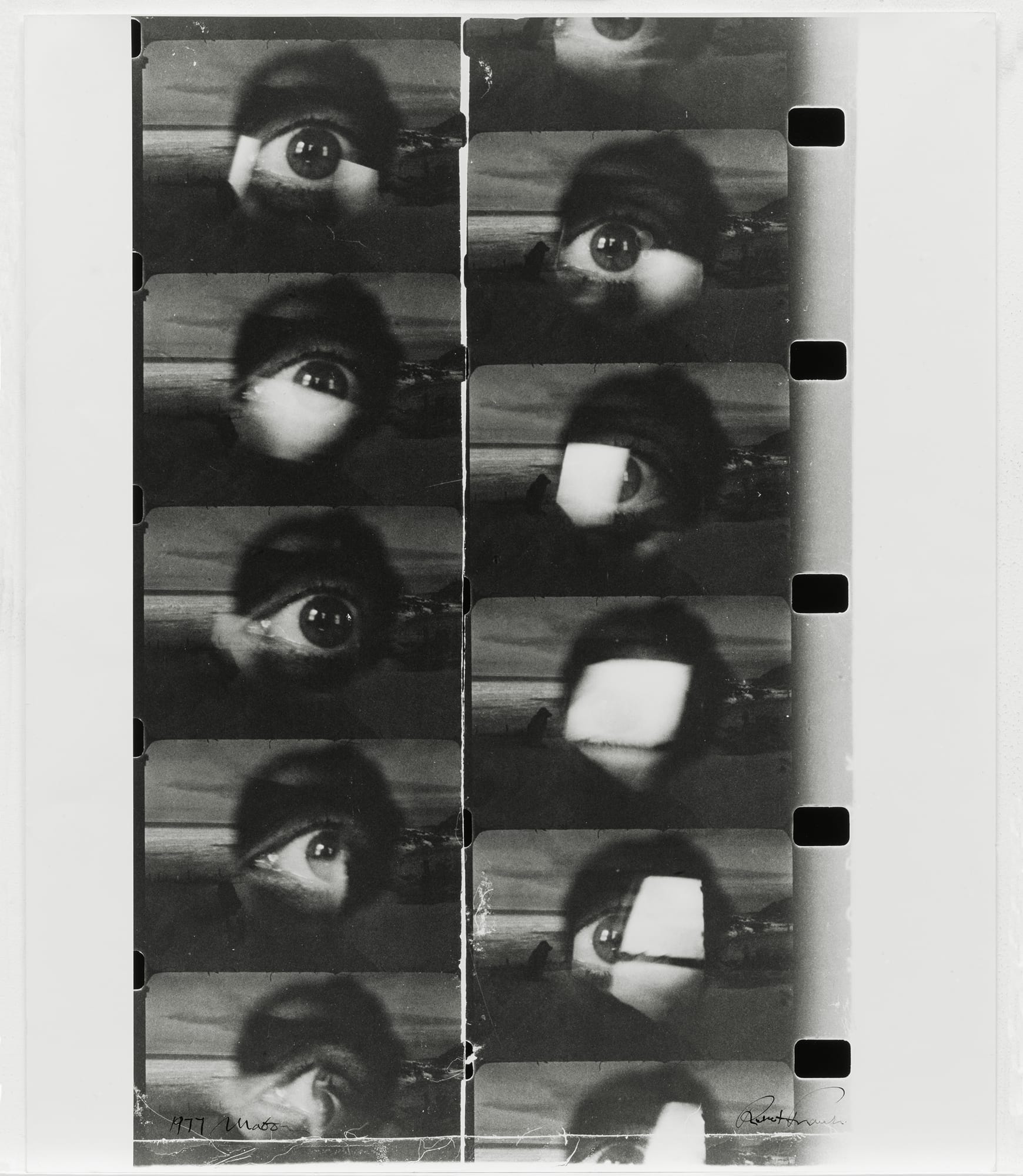 As the 1960s and ’70s progressed, Frank became increasingly interested in darkroom experimentation, playing with the materiality of the image and collaging film strips together on one single photographic print. “Mabou Winter Footage” (1977), for example, both channels early experimental cinema — recalling the disembodied eyes of Hans Richter’s 1928 Filmstudie — and pushes the boundaries of what a photograph can be. Frank sutures photographs together, taping them into panoramas or writing directly onto their surface, echoing contemporaries like Duane Michals and Robert Rauschenberg. Many of his later works hint at narrative, such as “Sick of Goodby’s” (1978), which was made after the death of his daughter, Andrea, and of his friend, Danny Seymour. Such image sequences feel both cinematic and handmade, melancholic yet somehow less alienated than The Americans. As Frank got older, he continued to keep up with the times, venturing into video and larger format color prints. This refreshing exhibition demonstrates that, far from being overshadowed by The Americans, Robert Frank was only getting started with it.
