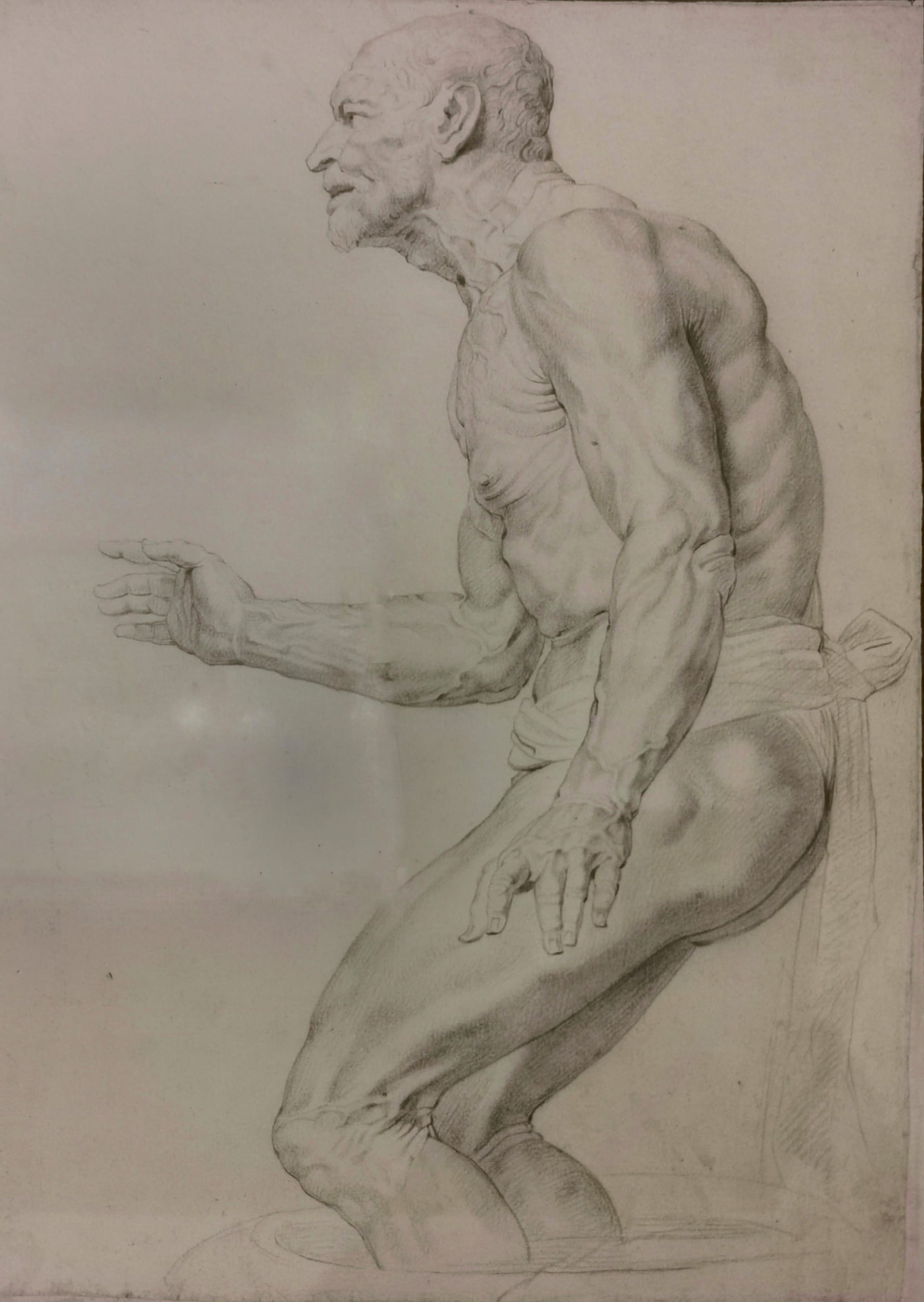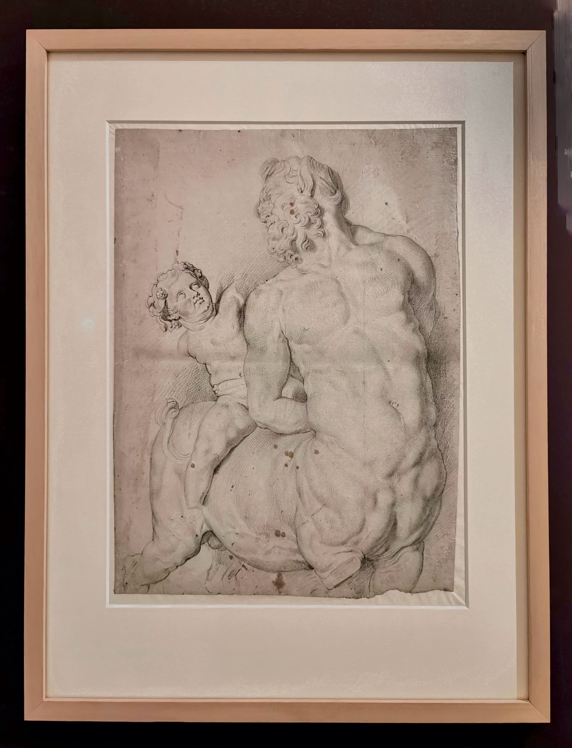 The young Rubens was intensely influenced by Rome’s ancient art, and the Borghese collection in particular. His approach to the ancient material was revolutionary. Instead of drawing or painting copies of statues, he made works that imagined the statues as living models, thereby creating works of art that seem to have been done from life — hence the show’s title The Touch of Pygmalion. The principal example of this influence on view is the “Death of Seneca” (1612–13), in which the philosopher’s pose is an exact copy of the “Dying Seneca” that was based on an ancient Roman statue now in the Louvre. Here, the flesh is pale but tangible, following the account by Tacitus of Seneca’s suicide, ordered by his former student Nero. The light is Caravaggesque; a surgeon is opening Seneca’s veins while a young scribe takes down his last words. The painting is in the exhibition, as well as a sketch by Rubens of the statue from the side, but it would have been great to see the actual statue. Even in the sketch, though, we can observe the statue’s static quality melt and fade, and the dying figure comes to life again. Rubens’s superb talent as a draughtsman continually blazes through. His “Study of the Belvedere Torso” (1601), drawn in red pencil, is one of the most powerful works on display.