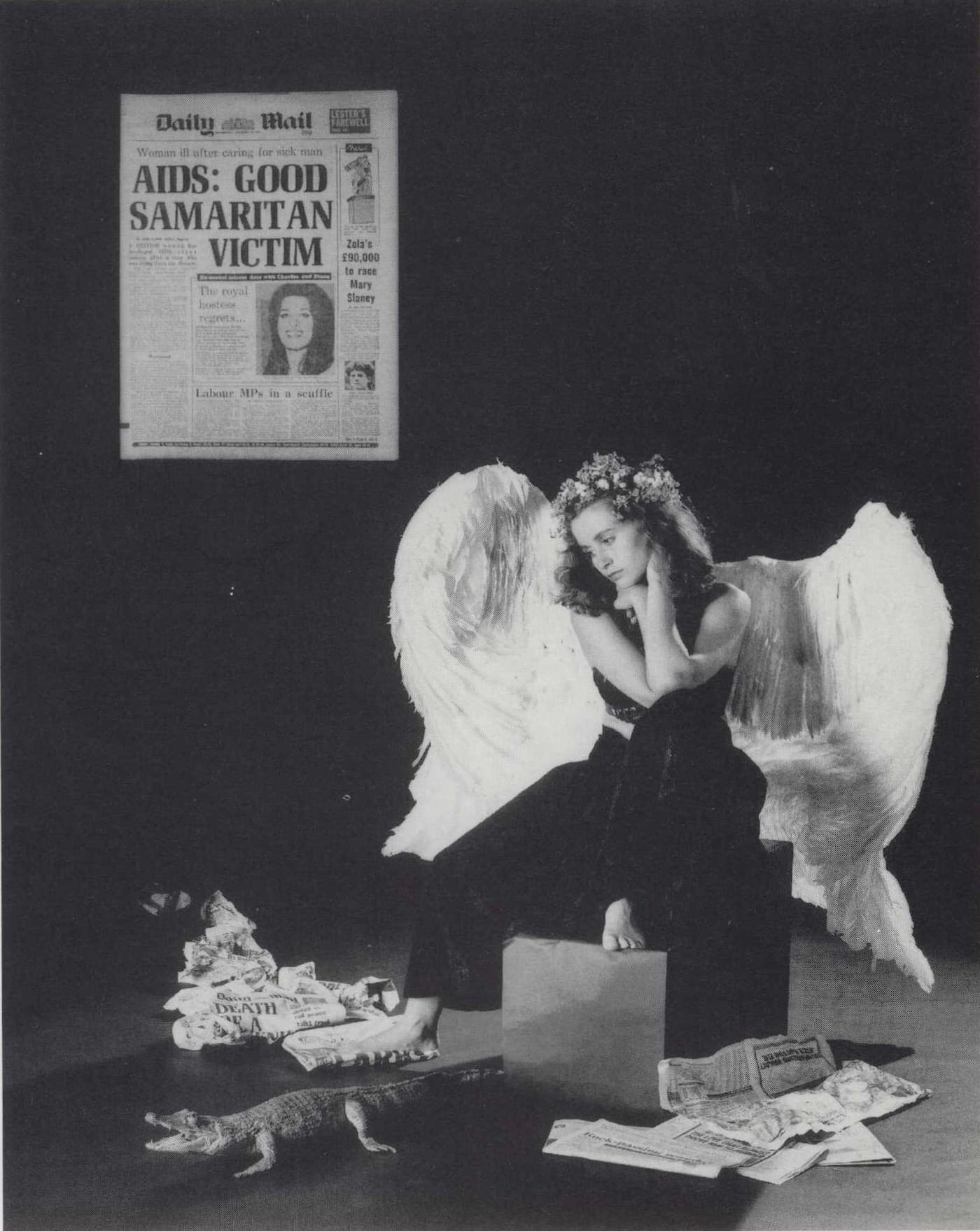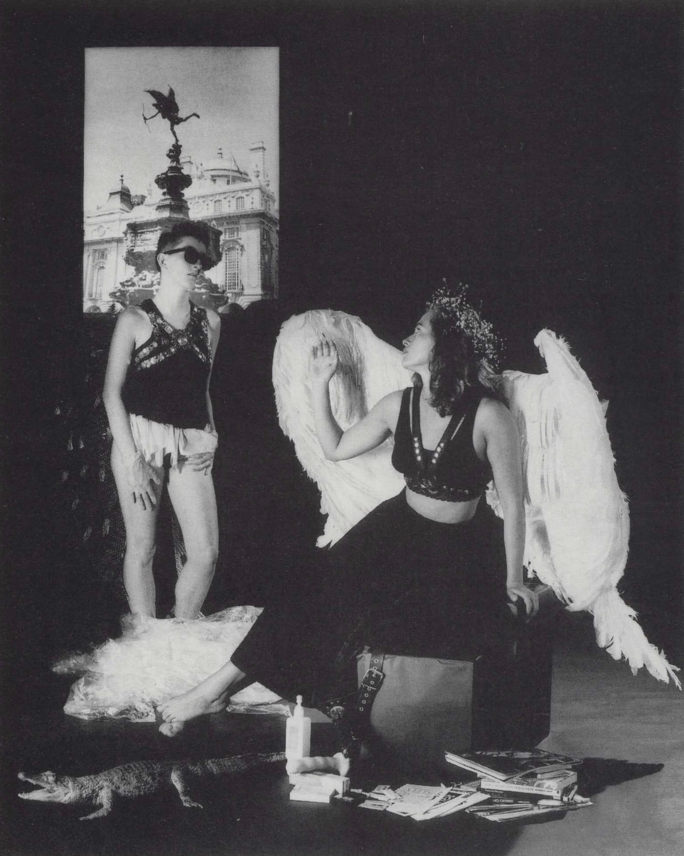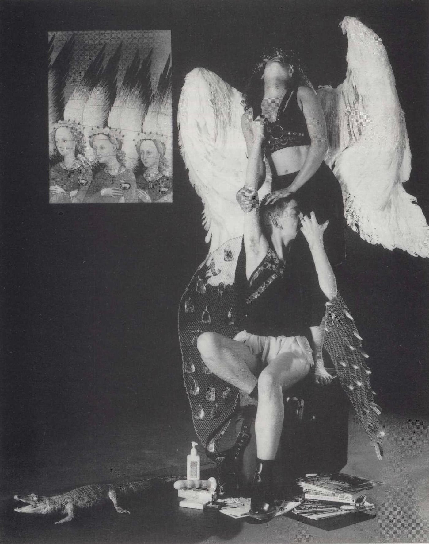 Tessa Boffin, from the series Angelic Rebels: Lesbians and Safer Sex (1989), reproduced in Boffin,Tessa and Sunil Gupta, Ecstatic Antibodies: Resisting the AIDS Mythology, Rivers Oram Press (1990) (© the estate of Tessa Boffin/Gupta+Singh Archive, London 2019)