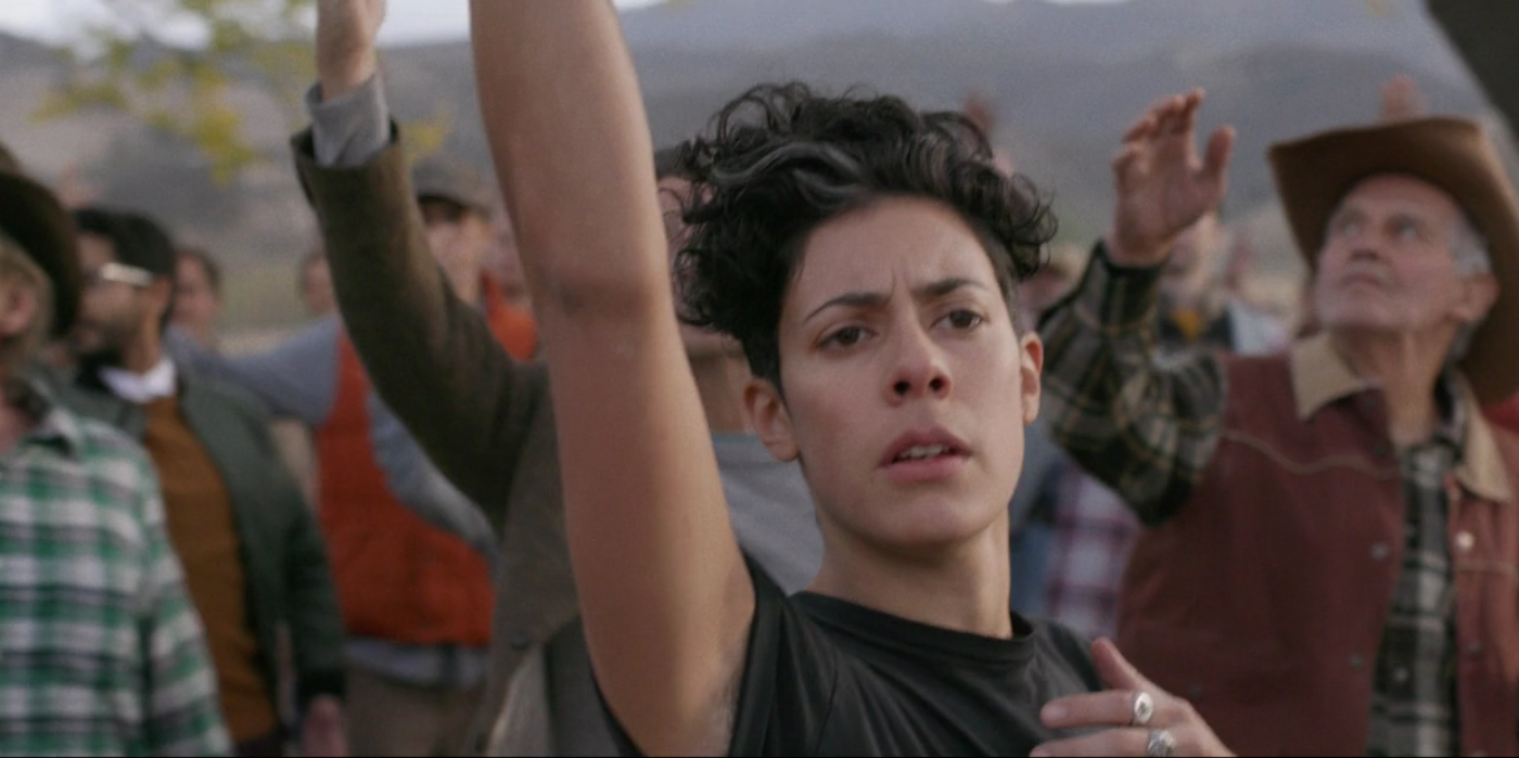 Although Lily Mojekwu is powerful as Paula, and Solindrez’s Devon owns the camera with what Soloway calls the character’s “queer cowboy masculinity,” Toby became my favorite character for the precision with which she continually and explicitly recentered the female gaze, refusing to be paternalized by Sylvere or by Devon. In the pilot — the only episode directed by Soloway — the framing of the shots as Sylvere approaches and talks to Toby formalizes the female gaze Soloway laid out in her TIFF talk. We see Sylvere seeing Toby, sexualizing and infantilizing her with his male gaze. But he is removed from the frame as Toby rejects his assumptions about her and actively mocks his research project, finally telling him, in the following episode, “You’re awful.”