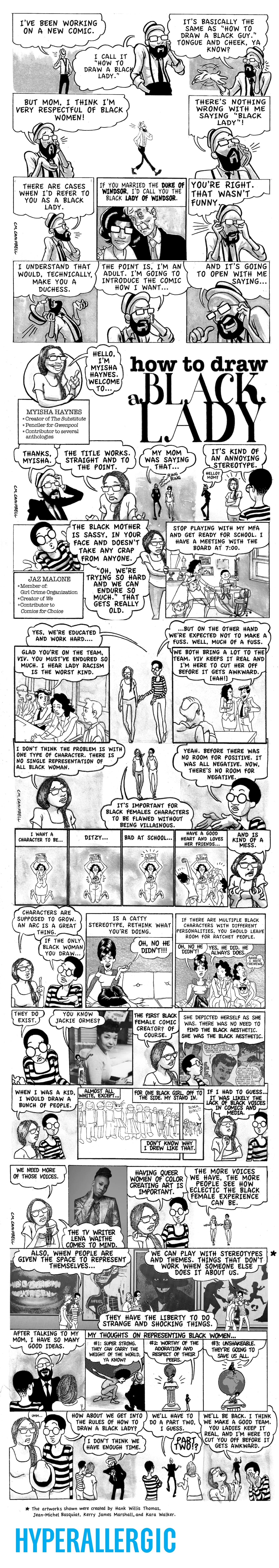 More from Myisha Haynes and Jaz Malone at their websites. See CM Campbell’s comic “How to Draw a Black Guy” in our archive.