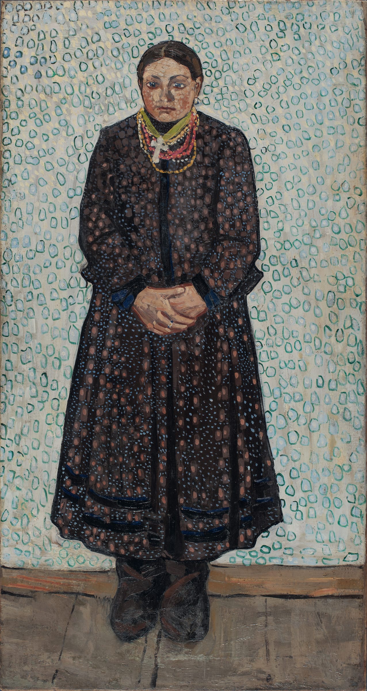 In the relatively recent past, we have generally been persuaded to think of Malevich as a member of the Soviet avant-garde. Tate Modern’s 2014 catalogue on the occasion of a great gathering of his works describes him as having “come of age in Tsarist Russia.” Not so here. Malevich is identified (like all other artists in this show) by his Ukrainian name: Kazymyr Malevych. Born in Kyiv to a Polish family, he grew up in the countryside, and local folk traditions were very close to home, as they were to so many of the artists on view. As for Delaunay, she is generally remembered as a celebrated member of the Parisian avant-grade. Except that she was no more French than Malevich was Soviet. Sonia Delaunay was of Ukrainian origin too; born in Odesa, she spent her childhood in the country.