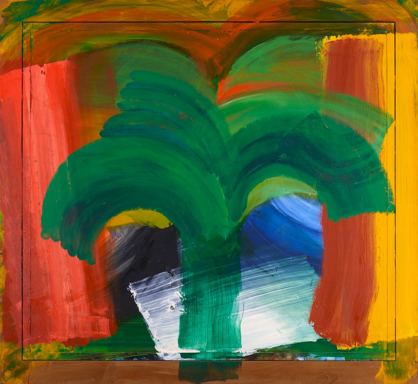 This long preamble is to the point. The new show, Howard Hodgkin: Memories — the first of any importance since his death — seems to open him up even more than before. And his very absence from the scene helps that. The presence of the man no longer comes between. All we have of him now are these paintings, and they speak for him, they reveal him, as never quite before. The show is called Memories, and it deals with a very important period, 1978-99. Hodgkin is here in full flight, receiving all the accolades that were his due — representation at the British Pavilion in the Venice Biennale, the Turner Prize, exhibitions when he sees fit. Howard always wanted to call the shots …