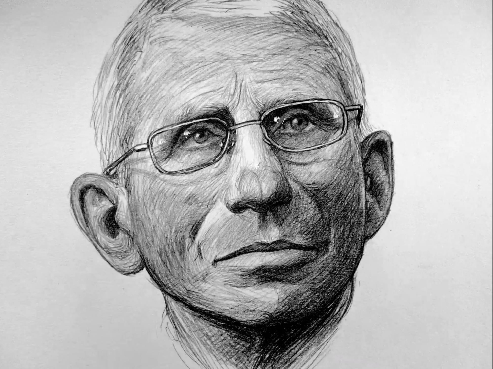 A still from Hugo Crosthwaite's commissioned portrait of Dr. Anthony Fauci (all images courtesy Hugo Crosthwaite)