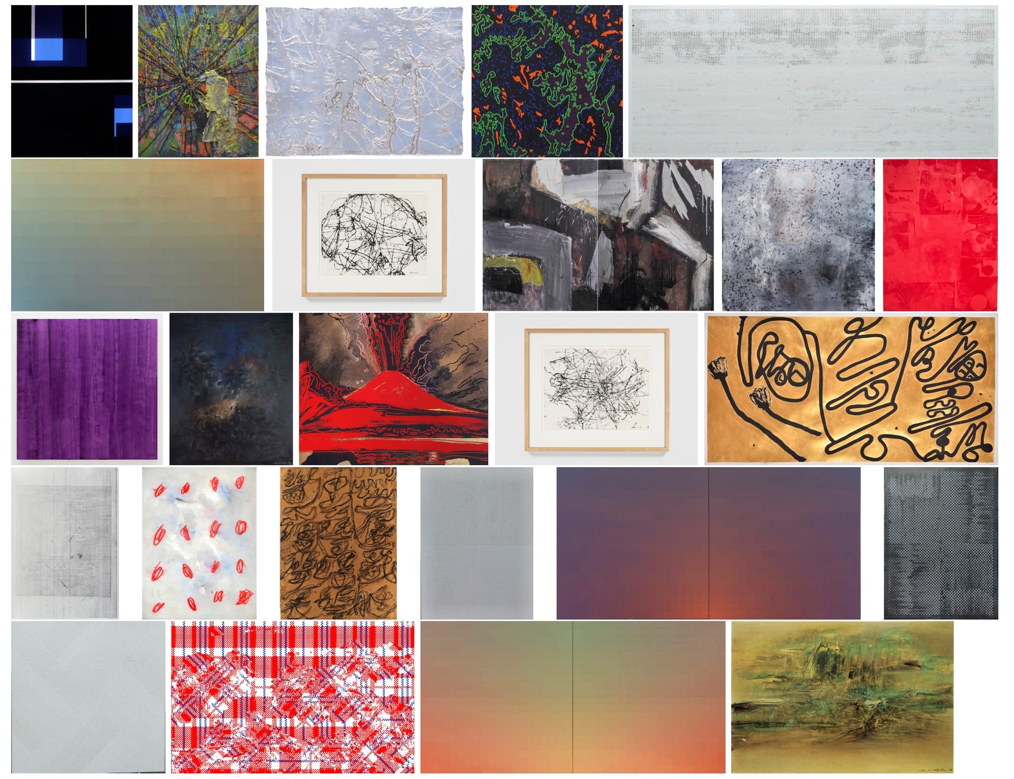 Researchers then tested whether or not these generated works could pass as creative to some people. An object, for their purposes, demonstrates creativity if it is both “novel and influential.” The first question they posed was whether humans could simply distinguish between the computer’s art and human-made artworks. As Elgammal sums up in a blog post, participants believed that the generated images were made by artists 75% of the time, compared to 85% of the time for the collection of Abstract Expressionist artworks, all made between 1945 and 2007. In terms of the Art Basel paintings, participants thought that humans had made them just 48% of the time. Selected at random and chosen for their lack of figuration and obvious brushstrokes, the art fair collection featured works by David Smith, Andy Warhol, Leonardo Drew, although the vast majority of the 25 paintings, interestingly, were produced by Chinese artists including Ma Kelu, Zao Wou-Ki, and Xu Zhenbang.