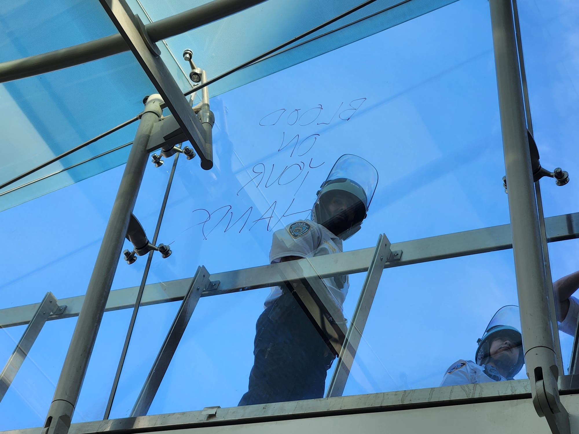 In an email to Hyperallergic, a spokesperson for the Brooklyn Museum claimed that damage was caused to "existing and newly installed artwork on our plaza" and that "members of our public safety staff were physically and verbally harassed."