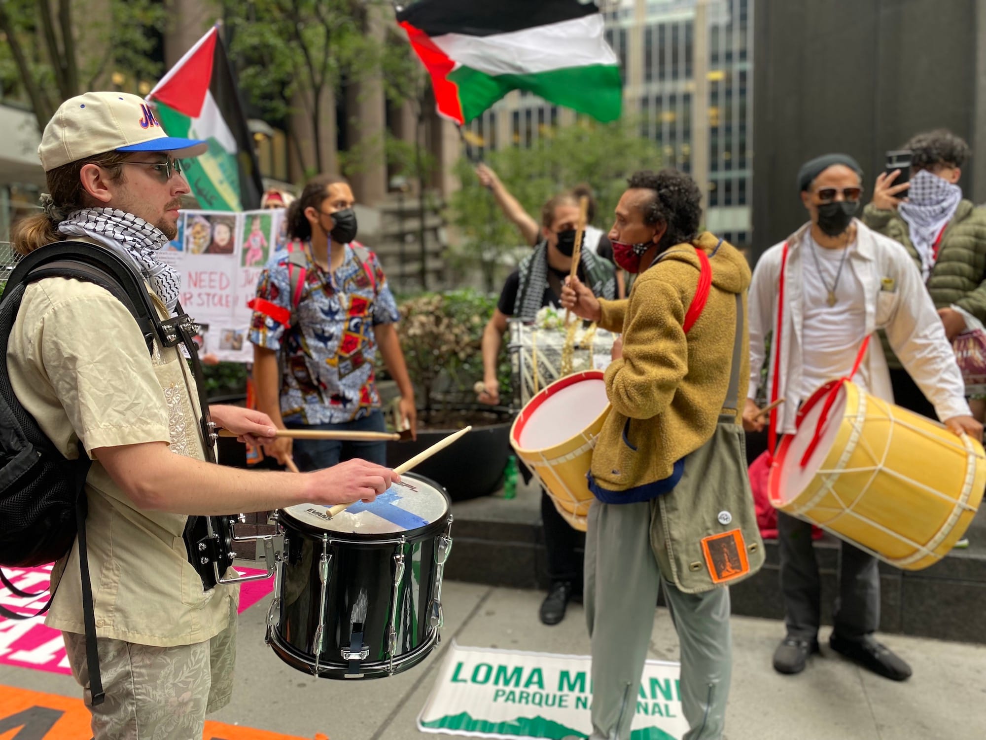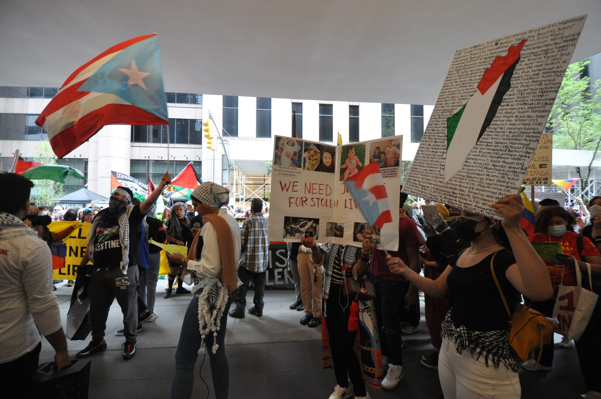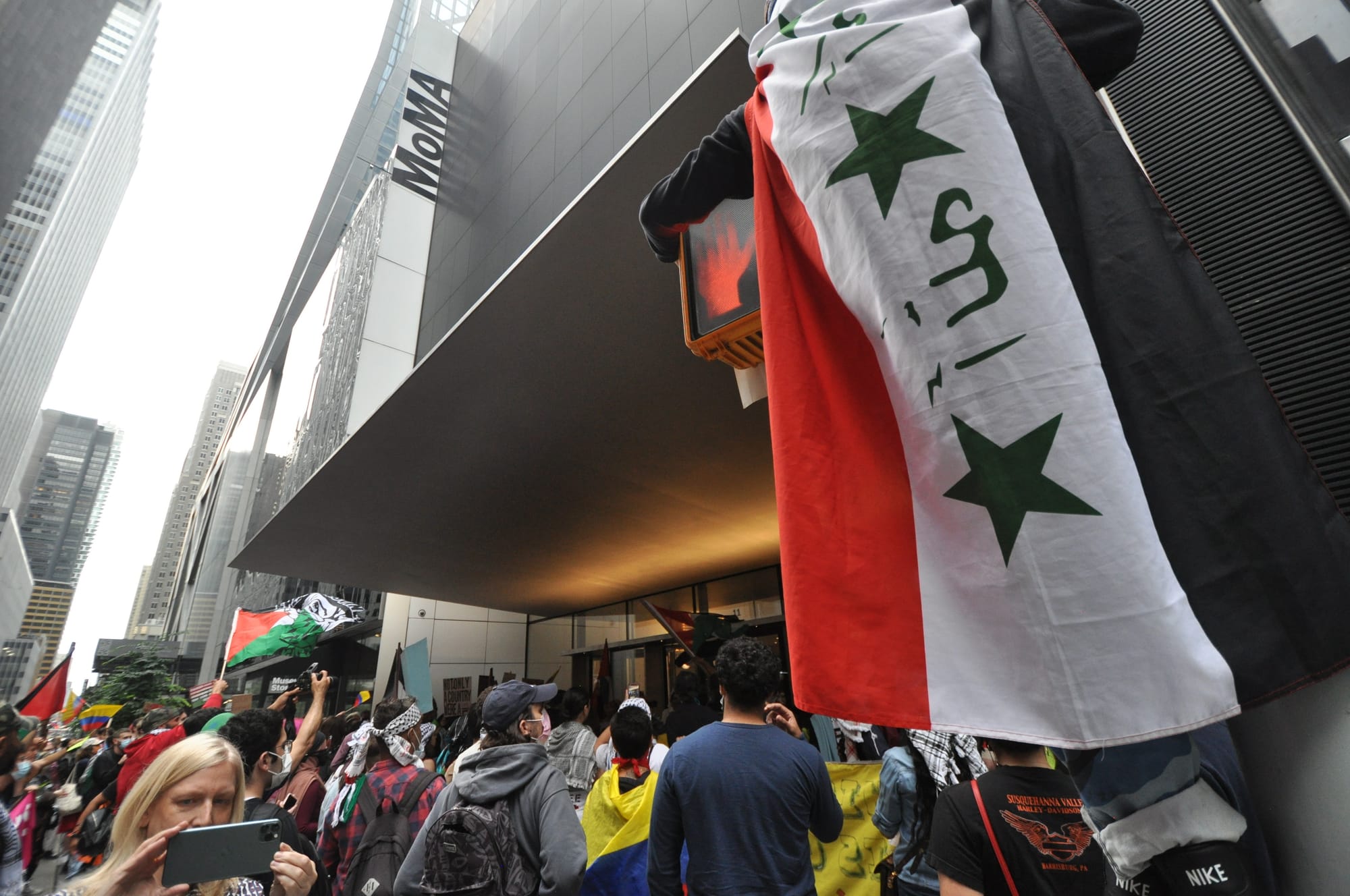 With loudspeakers blasting tunes from Palestine, Colombia, Puerto Rico, and the Dominican Republic, the protesters danced and socialized in front of MoMA until 10:30pm.