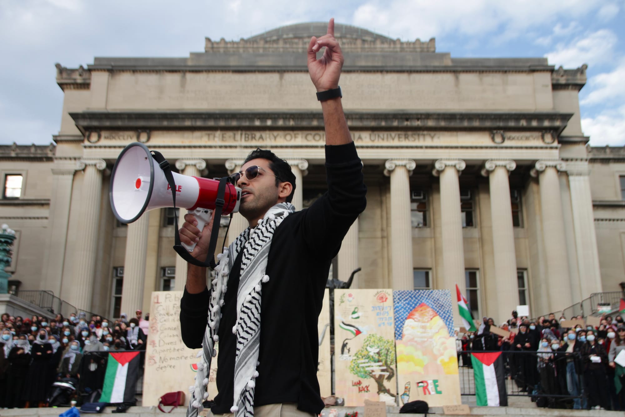 Mohsen Mahdawi, a protesting student and organizer, addressed the students supporting Israel. “I see you as human," he asked. "Why don’t you see our people as human?”
