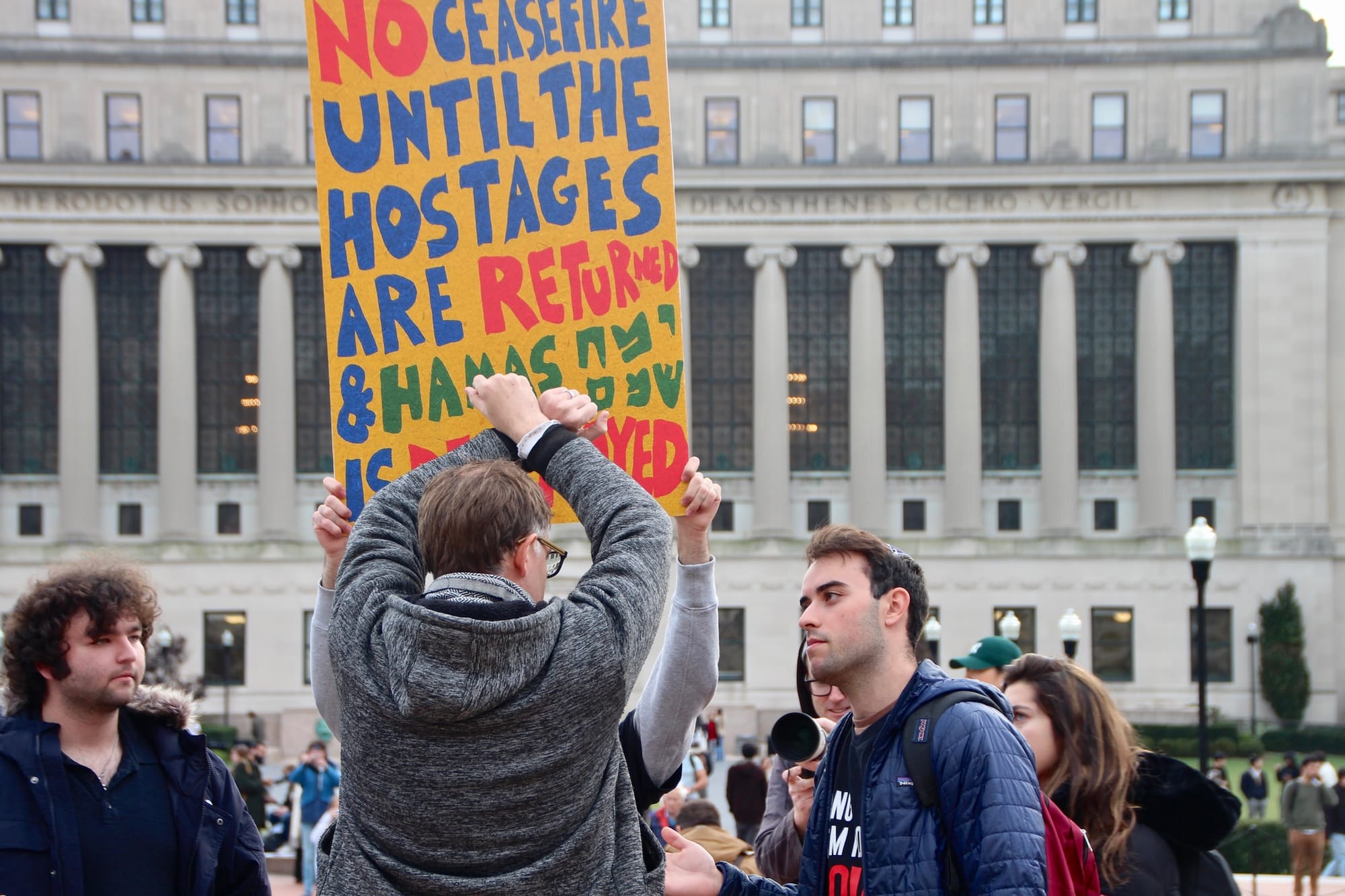 As has been commonplace since the first demonstration in support of Palestine took place on Columbia’s campus on October 12, the rally was met by counter-protests in support of Israel and saw a number of face-offs between the two groups. One of the counter-protesters, Ben Zonshayn, said he was there because he was part of the dual-degree program that the protesters were calling to be canceled, adding that he thought there was little chance that the school would comply with that demand.