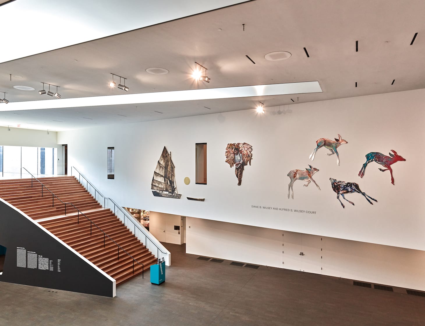 Keegan and Liu came up with the theme of migration: works representing China are on one side of the space, while those representing America are on the other. “Hung refers to immigration as being a bridge, and this reflects the two cultures,” she notes.