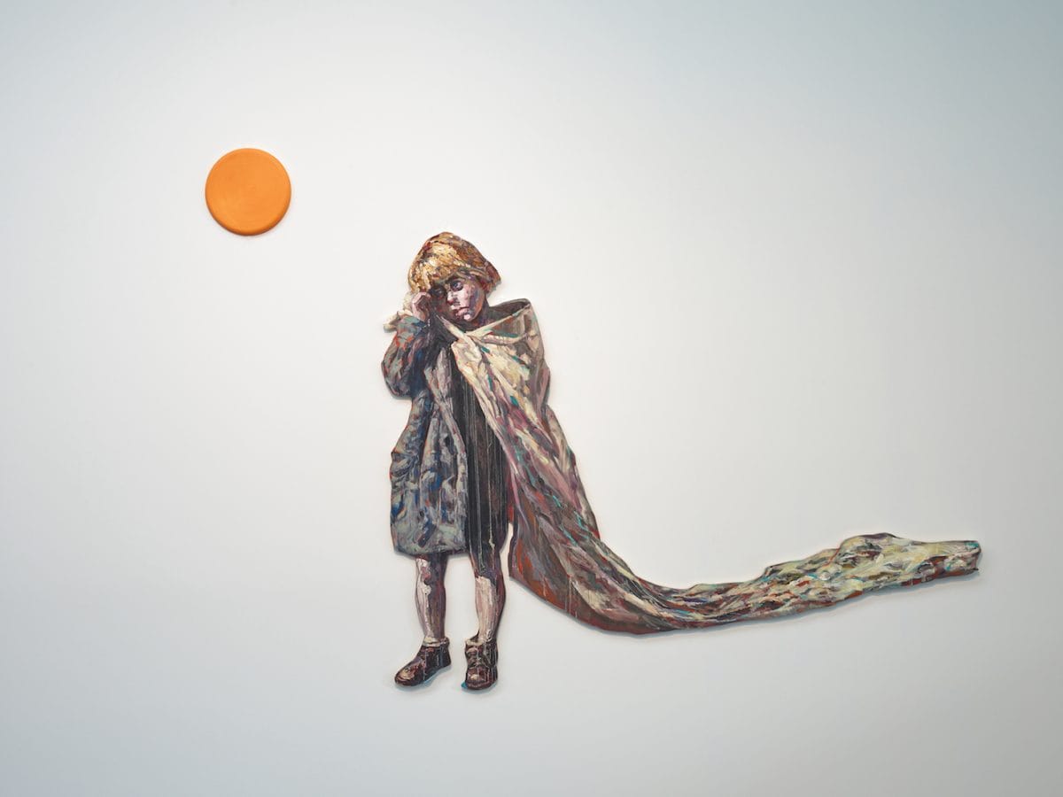 In the last few years, Liu had been looking at photos of people taken during the Great Depression in the Dorothea Lange Archive at the Oakland Museum of California. Golden Gate (金門) includes “Girl with Sack” (2021) and “Cotton Picker” (2021), both reimagining Lange’s photographs through Liu’s weeping realism.
