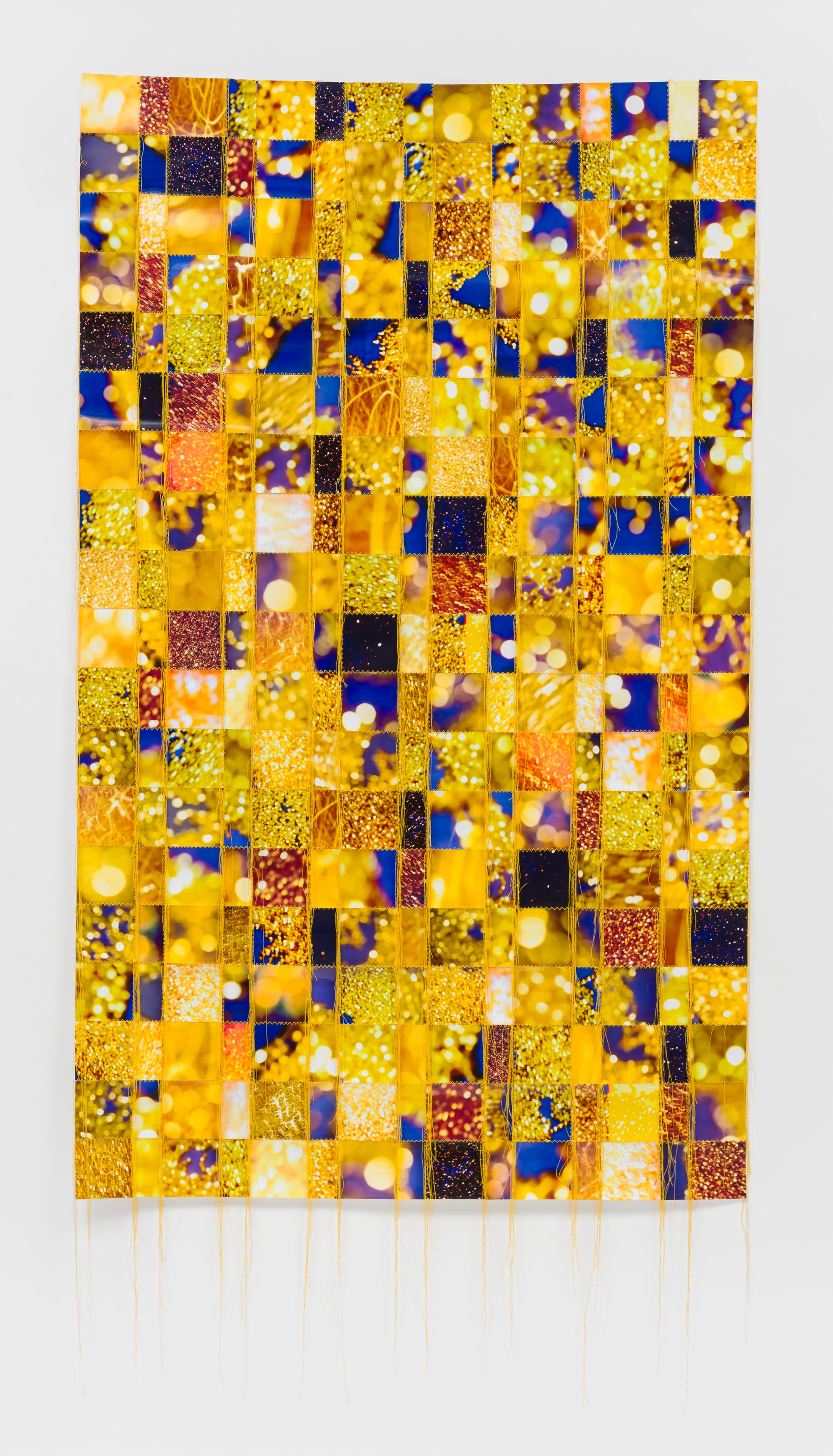 Sameshima refuses to spell out his referent: The larger font of “illness” compared to “anonymous” emphasizes evasive generality, satirizing the Reagan administration’s silence and fearmongering tactics. On the contrary, Reynolds acutely understood that naming is often a political gesture: AIDS’s many victims, rendered anonymous or obscure precisely because mourning victims undermined the state’s heteronormative agenda, are explicitly named in his woven photo tapestry of c-prints of AIDS memorial quilts. An early member of ACT UP, the artist infused low material and the performative dimension of language with militant energy to counter the state’s official memory culture, which threatened to deflate a plenitude of loss into impersonal statistics. Together, the two works signal to viewers that they are walking into an exhibition moving between that which is particular and universal in queer experience and the incessant gaps between the two.