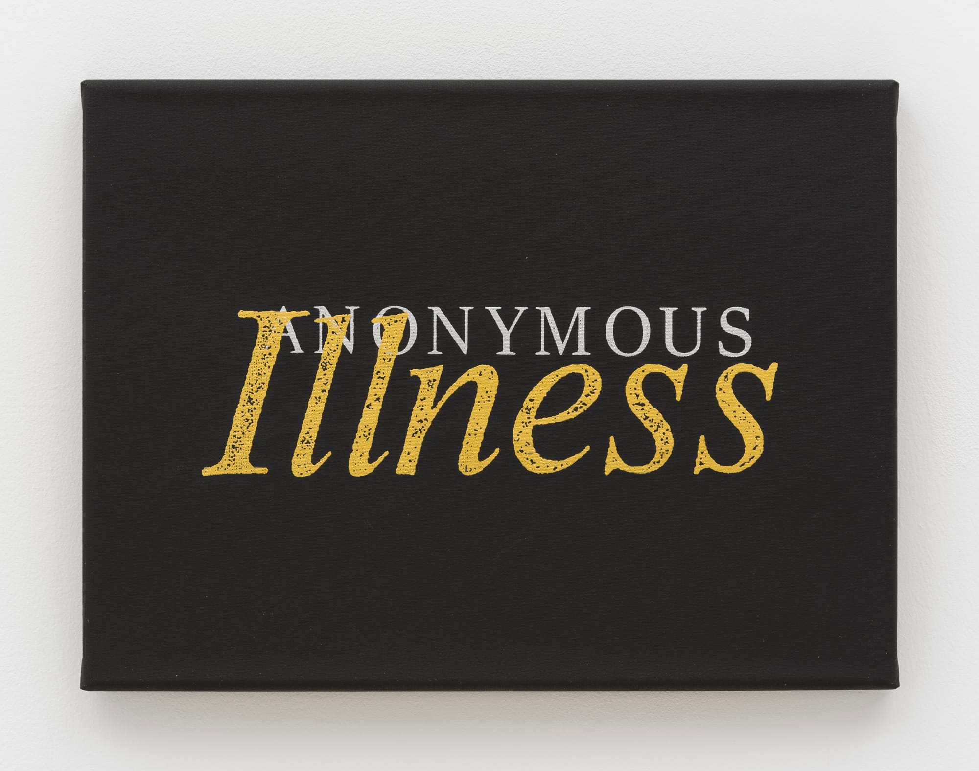 Contradictions arise as soon as one walks into PPOW’s storefront space on Broadway. Berlin-based Dean Sameshima’s “Anonymous Illness” (2024), a painting of the titular words that refuses to name the disease it alludes to, is paired with late activist-artist Hunter Reynolds’s “Quilt of Names (panel 2)” (1992), in which various angles of documentation of the AIDS Memorial Quilt in Washington, DC thread are together, explicitly naming those the disease rendered victims. In the context of a two-person, intergenerational exhibition forged from the shadows the devastatingly poorly managed HIV/AIDS epidemic cast upon conceptions of queer sexuality, the side-by-side display represents two drastically opposed approaches to remembering the disease.