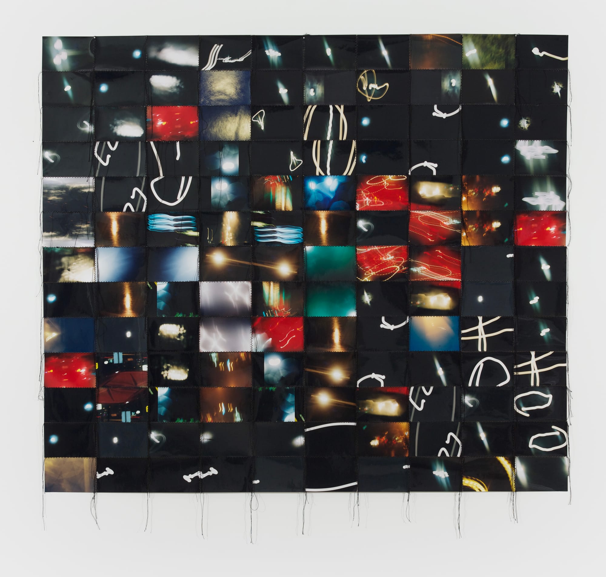Elsewhere, biographical details are elided in favor of documentation of more general truths. Reynolds’s “Moon Over Gerhard (FTL Bear Daddy Beach)” (2004) transforms the sexual bravado of cruising into abstract photography capturing auras of utopian desire via a grid of long exposure shoots of road signs, neon lights, and the moon above a beach. And Sameshima's abstractions of his experiences of visiting gay porn theaters in Berlin in works such as “Anonymous Berlin Stories” and “Anonymous Blue Movie” (2024) feel like shrouded biography: half hidden, half revealed.